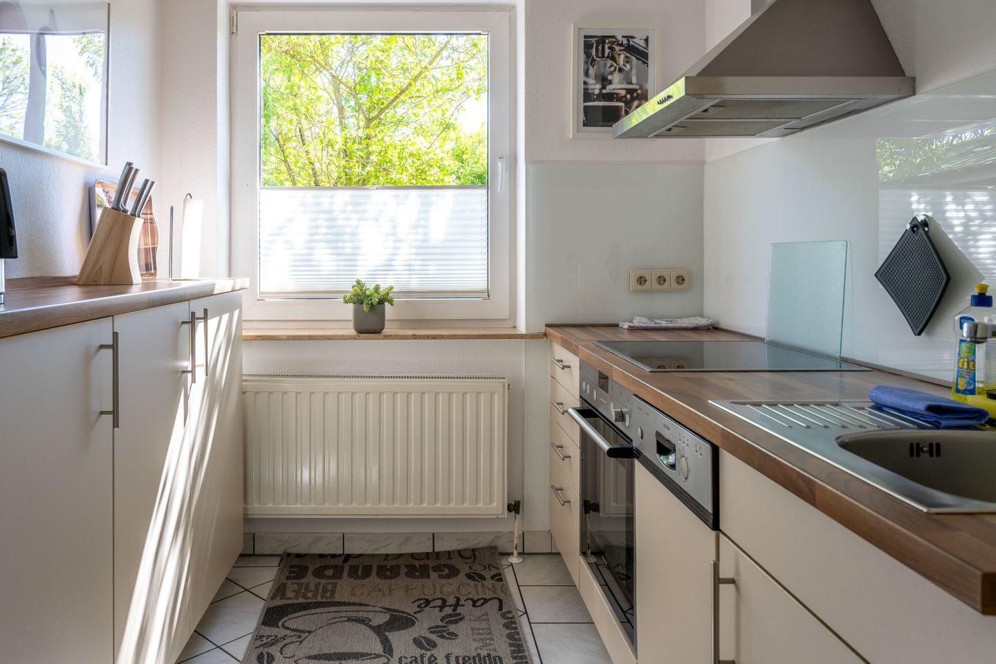 Zu den Highlights der Ferienunterkunft zählen wir u. a. den eigenen, eingezäunten Garten mit Terrasse und Strandkorb sowie die zentrumsnahe Lage.