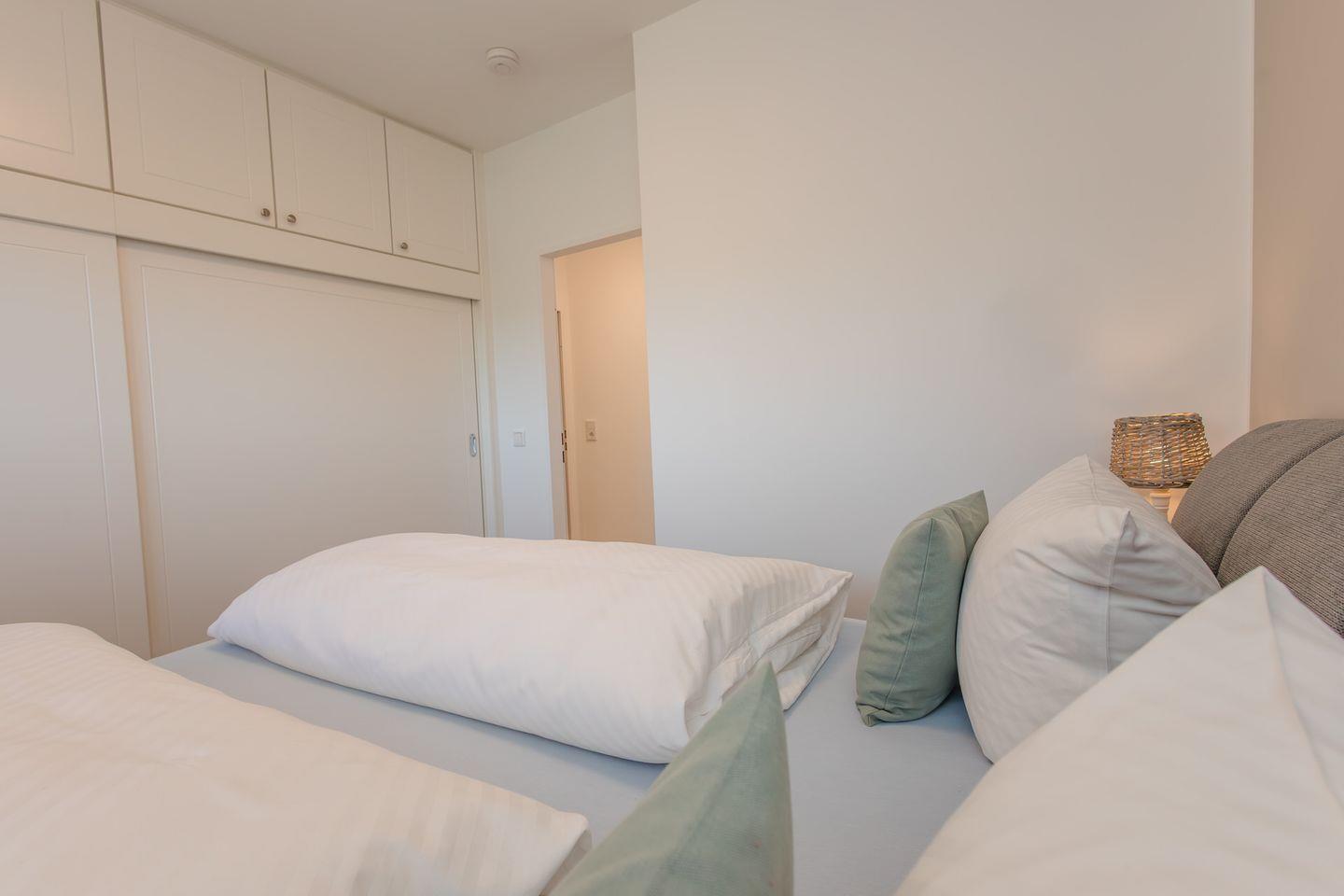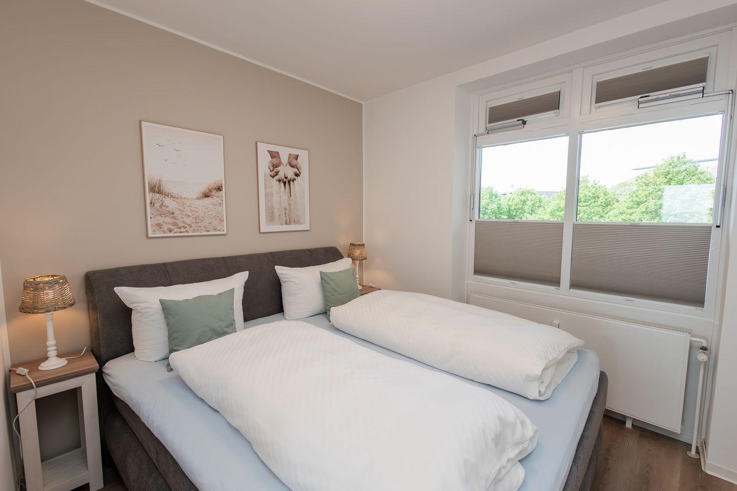 Die Ferienwohnung D8b im Haus Bi de Wyk, die im Jahr 2025 umfangreich renoviert wurde, verfügt über 1 Schlafzimmer und 1 Bad und bietet somit komfortabel Platz für bis zu 4 Personen zuzüglich einer Kleinkinderaufbettung. Auch bis zu 2 Hunde sind herzlich willkommen.