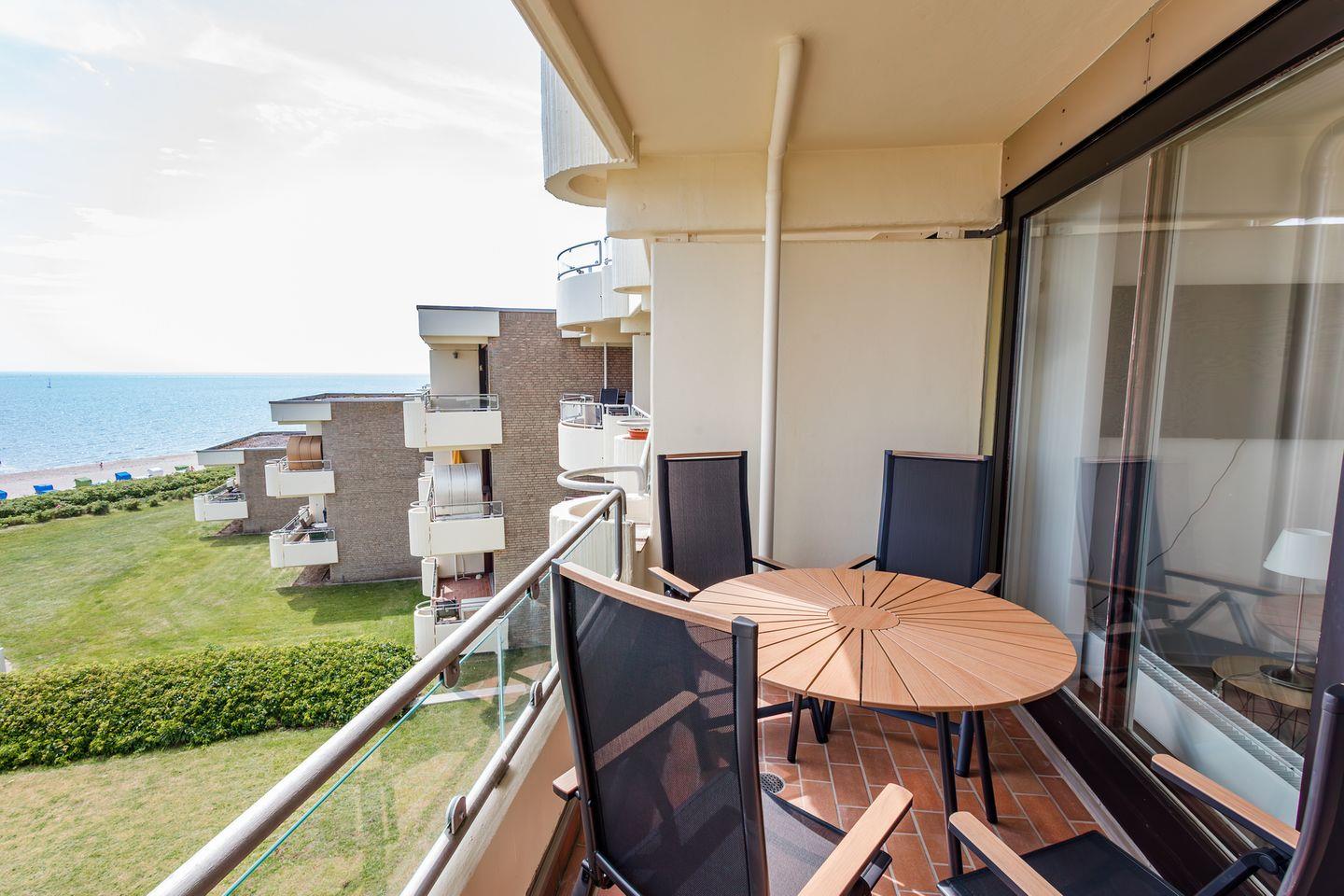 Strandnahe Ferienwohnung mit Balkon und traumhaft schönem Meerblick, sowie gemeinschaftlich genutzter Sauna und Schwimmbad.