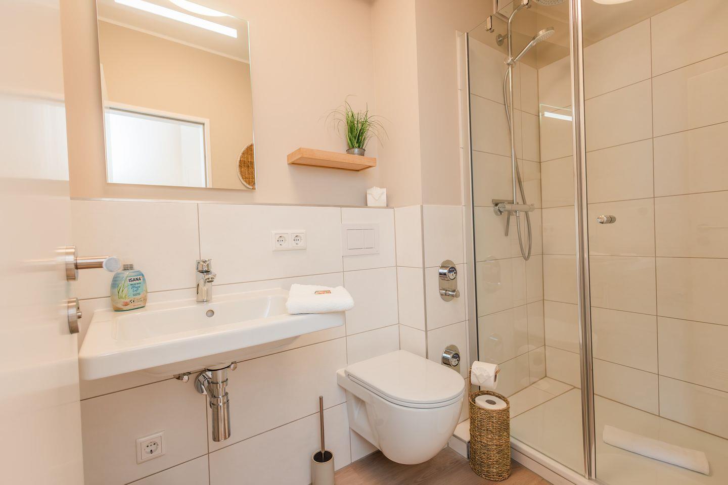 Die Gäste der Wohnungen D8a und D8b teilen sich einen gemeinsamen Hausflur. Zu den Gemeinschaftsbereichen zählen das Schwimmbad und die Sauna im Souterrain - ein echtes Highlight!