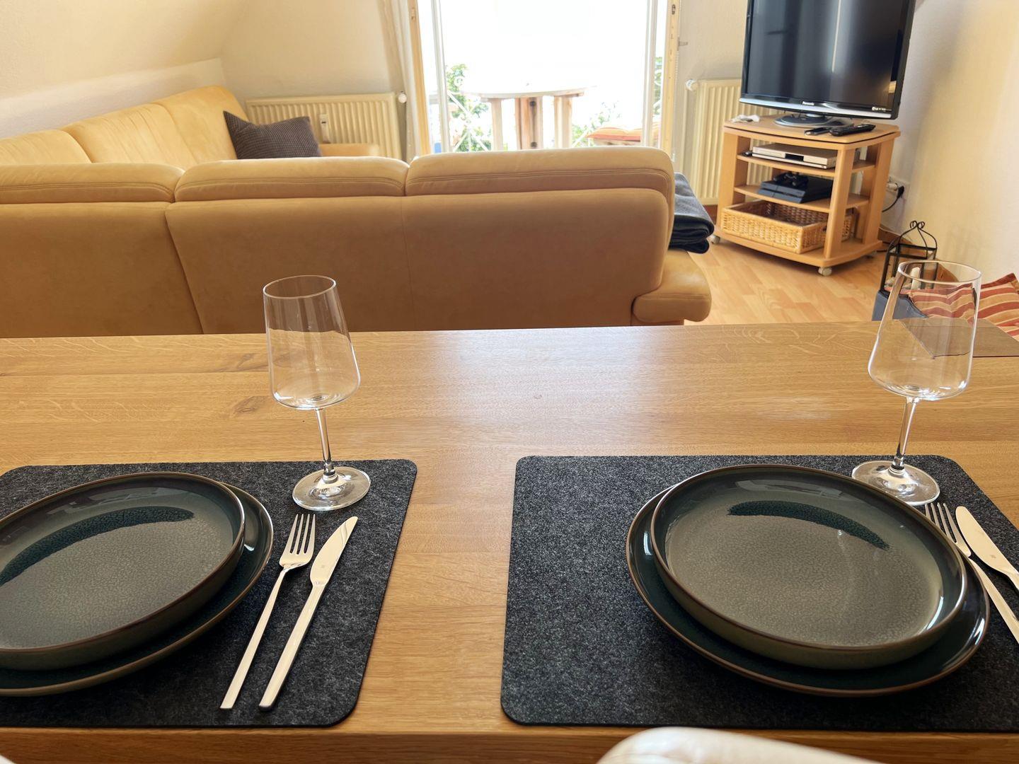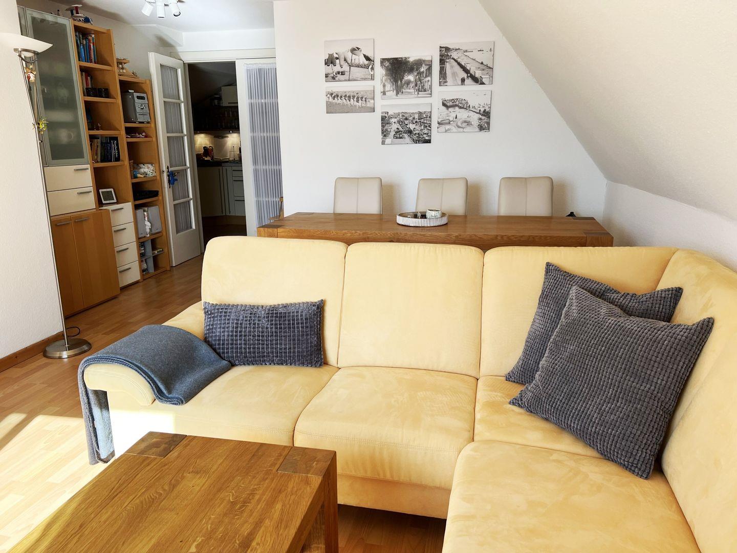 - Wohnzimmer mit Eckcouch, Esstisch