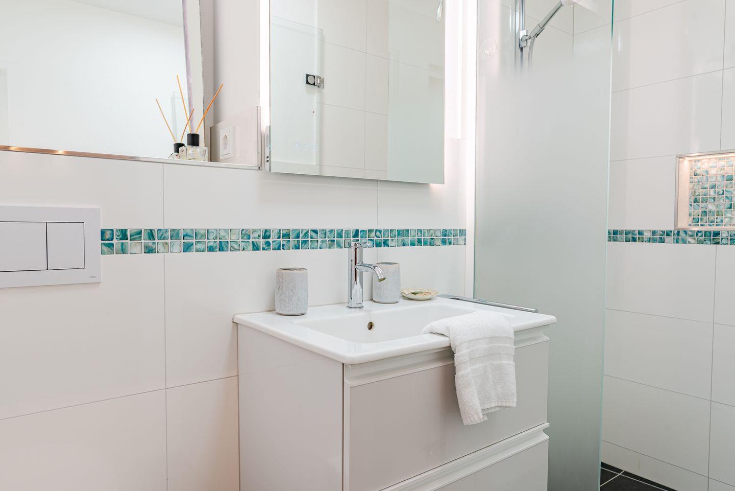 Moderne Ferienwohnung in strandnaher Lage mit Terrasse und gemeinschaftlicher Sauna und Fitnessraum.