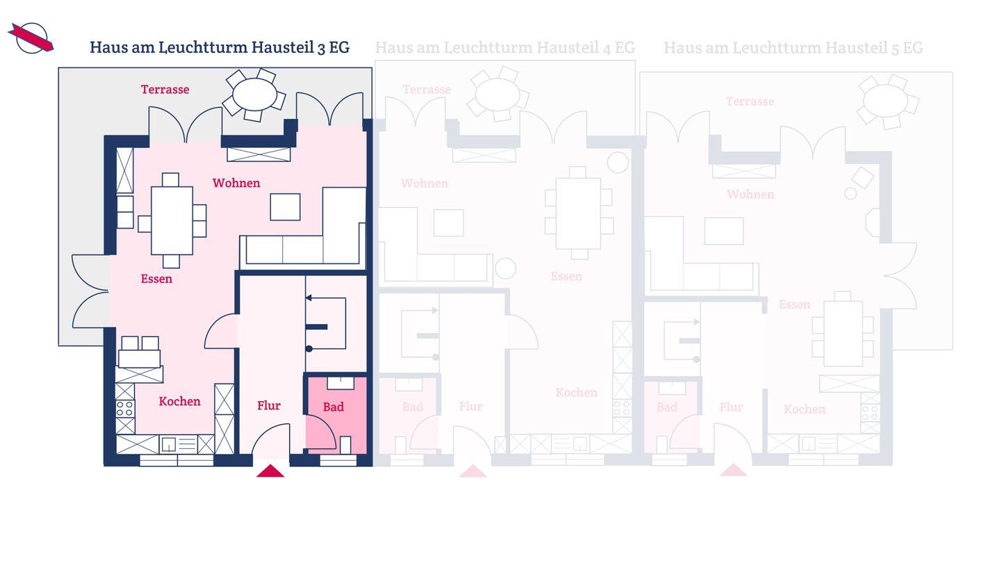 Das Hausteil hat 4 Schlafräume und einen schönen Balkon. Auch ein Parkplatz steht am Ferienhaus zur Verfügung. Das Hausteil erstreckt sich über das Erdgeschoss, 1. Obergeschoss bis zum 2. Obergeschoss. Dieses Hausteil hat eine geschmacksvolle und moderne Ausstattung und ist mit ihren Treppengittern sehr kinderfreundlich eingerichtet.