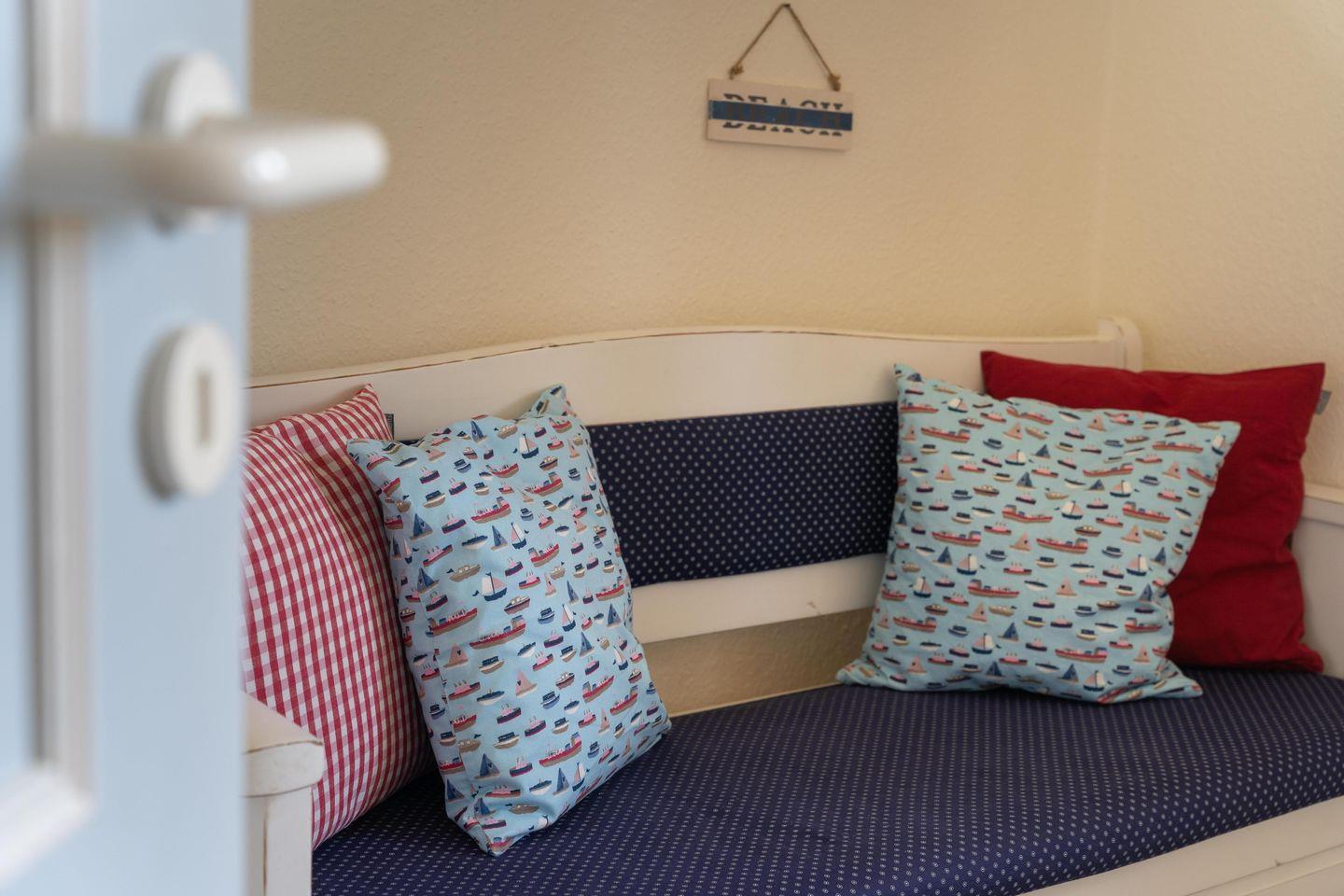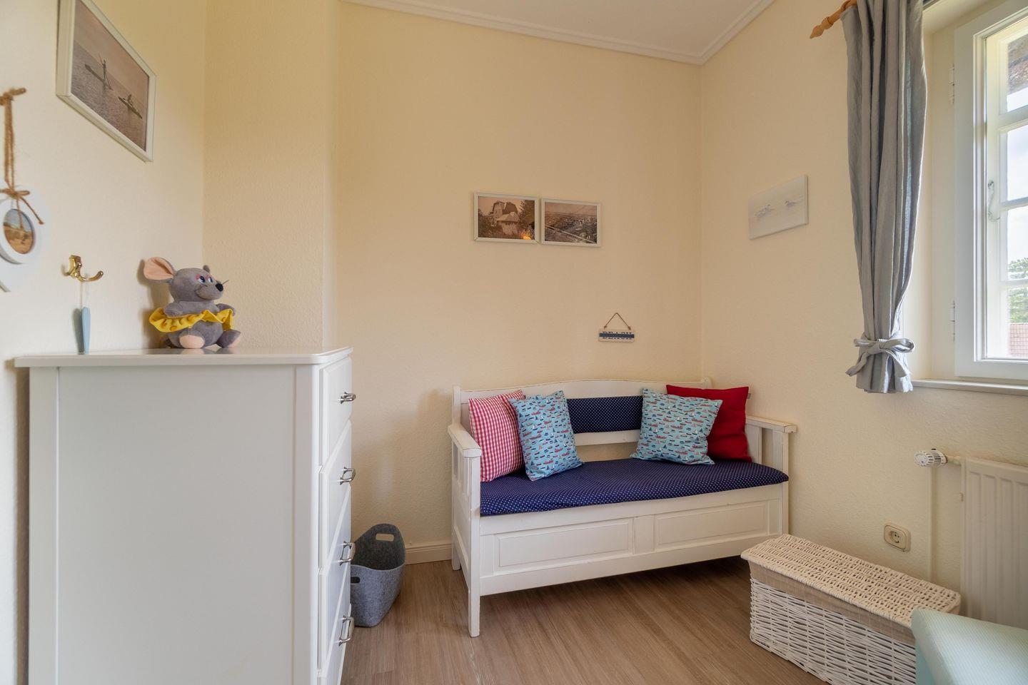 Die "Friesenstuv" ist im zweiten Stock gelegen und bietet für maximal 4 Personen inklusive Kleinkinderaufbettung ausreichend Platz. In dieser Wohnung haben Sie Meerblick aus fast allen Räumen. Sie können aus zwei Schlafzimmern, dem Wohnzimmer und der Küche beobachten, wie die Flut kommt und die Fähren vorbeifahren. Das dritte Schlafzimmer dient als Ausweichmöglichkeit. Wenn es dunkel ist, können Sie den Leuchtturm von Langeneß leuchten sehen. Die Friesenstuv ist im Jahr 2016 aufwendig und sehr liebevoll renoviert und neu eingerichtet worden.