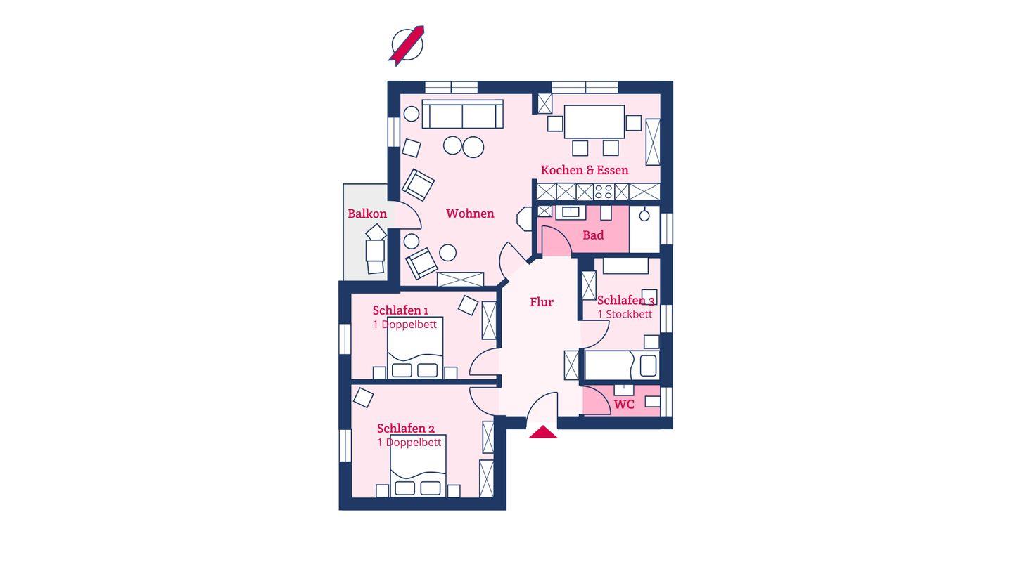 Ferienwohnung für bis zu 4 Personen inklusive Kleinkinder.