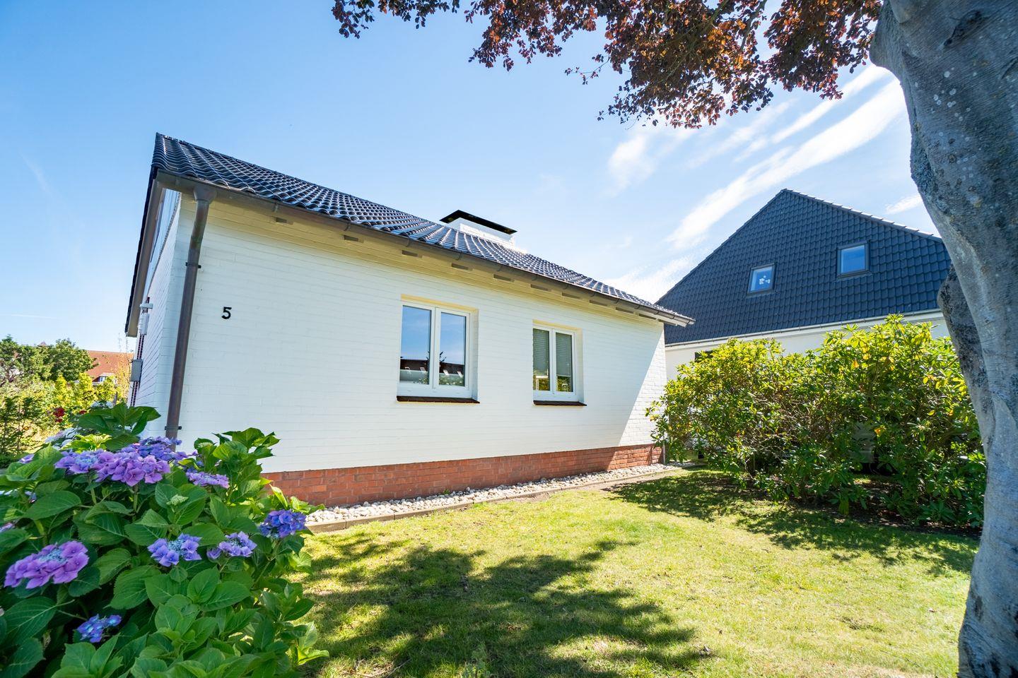 Ruhig gelegenes, neu saniertes Ferienhaus mit Terrasse und sehr großzügigem Garten im Zentrum von Wyk.