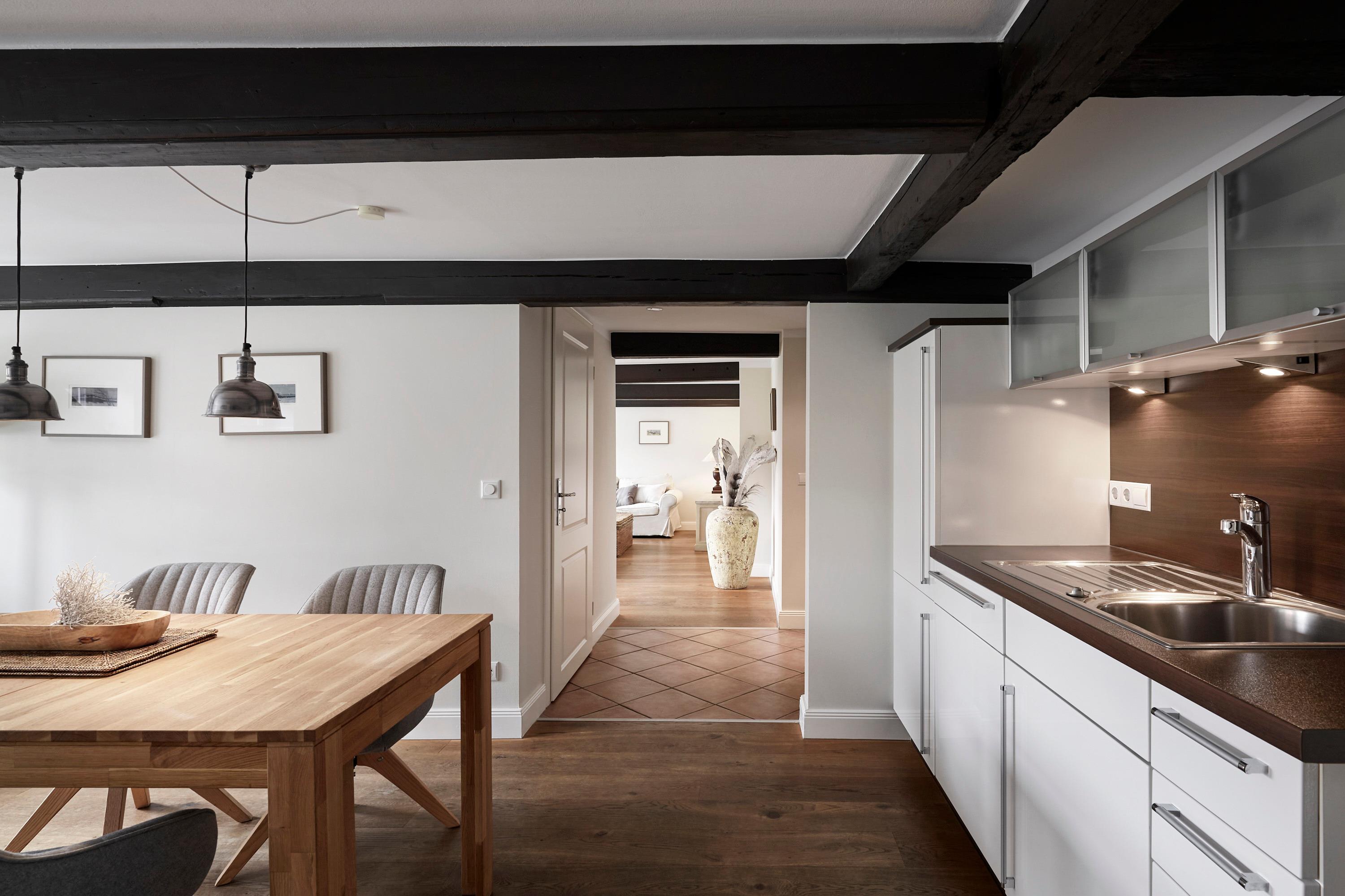 Diese Wohnung eines Friesenhauses aus dem 18. Jahrhundert liegt direkt am alten Dorfplatz von Boldixum. Die Eigentümer haben die Wohnung stimmungsvoll und gemütlich eingerichtet. Neben [nbsp]einem großen Wohnbereich befindet sich die Küche mit Essplatz. Zwei Duschbäder und auch zwei Schlafräume, sowie ein großer Flur und Eingangsbereich runden den Grundriss ab. Das Haus hat wunderschöne alte Deckenbalken. Wie in vielen alten Friesenhäusern üblich, ist daher die Deckenhöhe nicht viel höher als 1,80m, was den Charme dieser Häuser ausmacht. Ein kleiner sonniger Garten mit Sitzecke lädt zum Verweilen ein. Die Nähe zum Zentrum von Wyk, welches auch fussläufig erreichbar ist, sowie zum Fährhafen und Südstrand stellt einen weiteren Standortvorteil dar.
