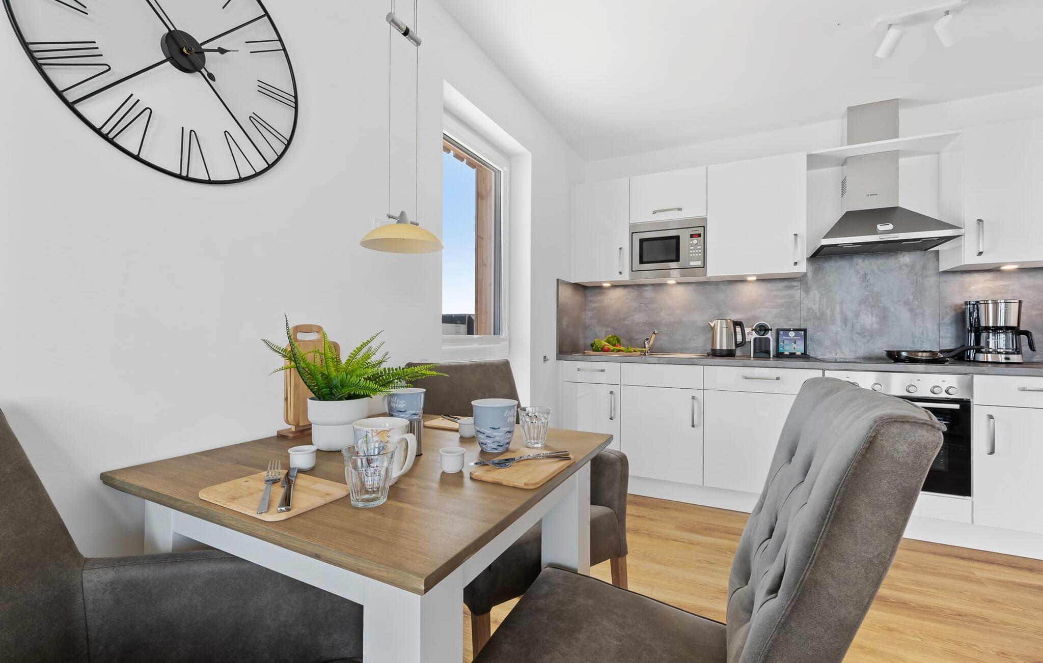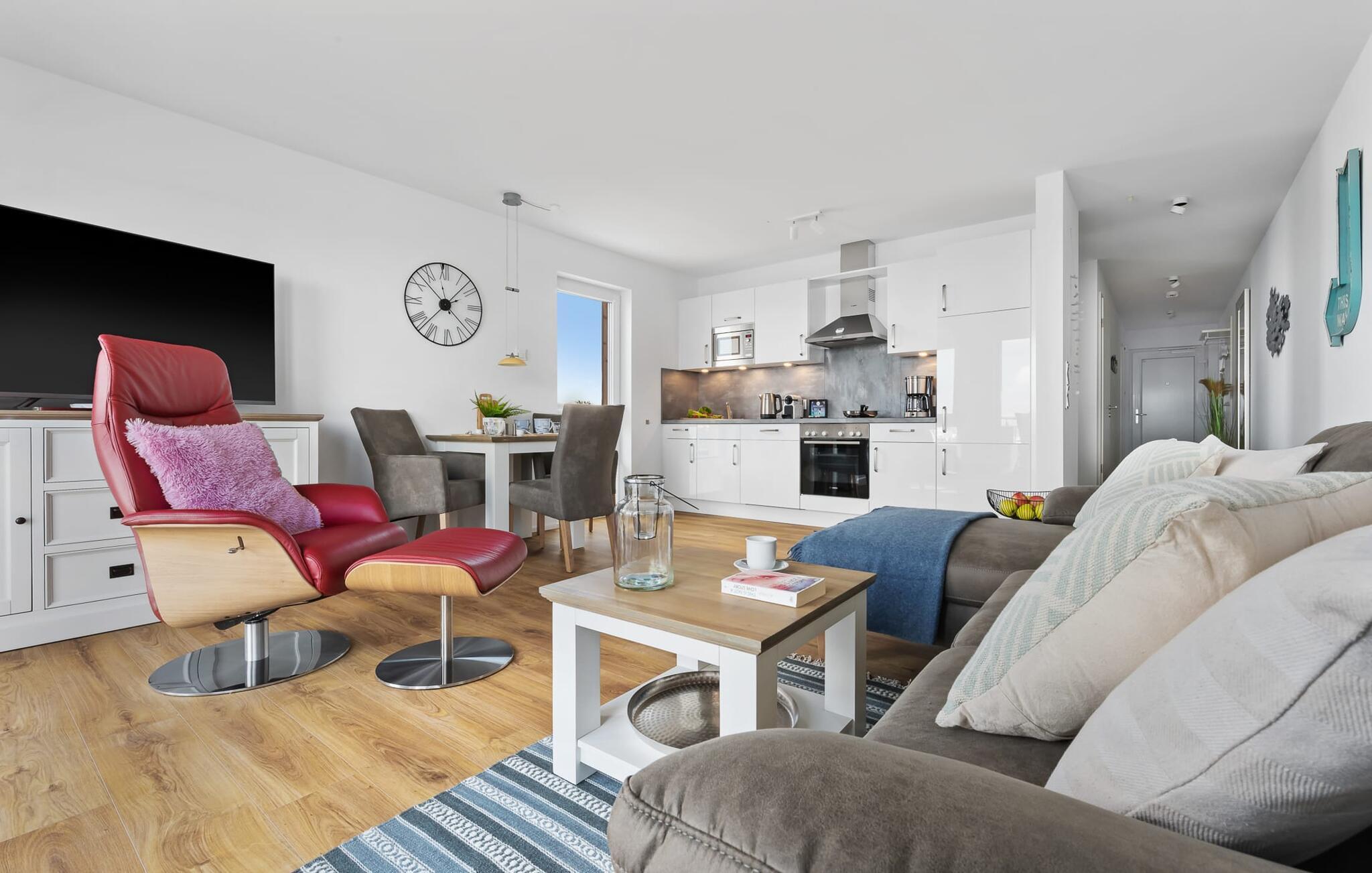 Ferielejligheden YLVI til 2 personer ligger direkte på havnepromenaden i feriestedet Olpenitz ved Østersøen og byder på alt, hvad I kan forestille jer til en afslappende ferie ved vandet. Promenaden med sine små fristende butikker og et velassorteret EDEKA-marked med bageri ligger bogstaveligt talt for gæstens fødder og indbyder til slentretur og indkøb. Sandstranden Weidefelder ligger i umiddelbar nærhed og er et MUST! Her er smukt på alle tider af året, ikke kun når strandstolene kalder om sommeren. I kan tage endeløse gåture her på den åbne Østersø og lade hverdagen bag jer. Lås døren til lejligheden op, kom ind og føl jer bare godt! jeres udsigt falder direkte gennem gulv-til-loft-vinduerne over altanen til havnen og vand til horisonten: hverdagen er allerede glemt. Den åbne stue/spisestue med den hyggelige opholdsstue og fjernsyn inviterer jer til at dase, og det veludstyrede køkken frister jer til at lave mad sammen. Spiseområdet lader heller intet tilbage at ønske, og I bliver glad for at blive siddende længere. Soveværelset med sin komfortable dobbeltseng og endnu et fjernsyn tilbyder de bedste betingelser for en afslappet søvn. På badeværelset med dagslys er der, udover alt det nyttige, et brusebad i gulvniveau til en vellykket start på en ny feriedag. jeres pakke inkluderer en parkeringsplads ved huset og en elevator, der bringer jer komfortabelt til anden sal. Vores favoritsted: Afslut dagen på balkonen med udsigt over havneaktiviteten. Bemærk venligst: OstseeResort Olpenitz er meget populært, og der bygges fortsat i parken. Ikke desto mindre kan I se frem til en 5-stjernet standard og et førsteklasses ophold. Byggeaktiviteterne kommer ikke til at forstyrre jer på ferien, og derfor gives der ikke yderligere afslag i prisen.