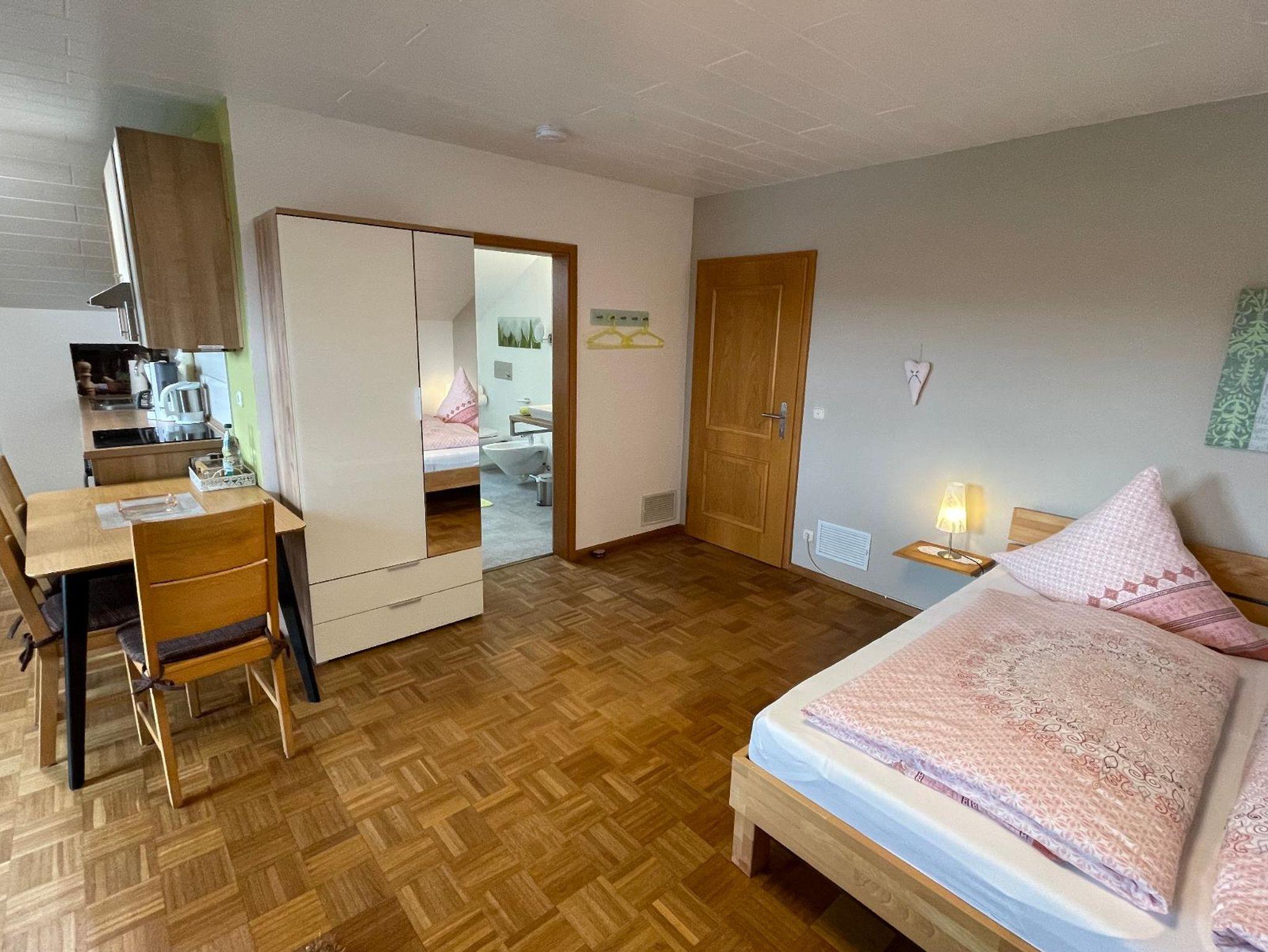 Apartment 37m² für 2-3 Pers., Doppelbett, Küchenzeile mit Herd, Ceranfeld, Kühl-Gefrierschrank, Geschirr, Töpfen, Besteck, Geschirrtücher