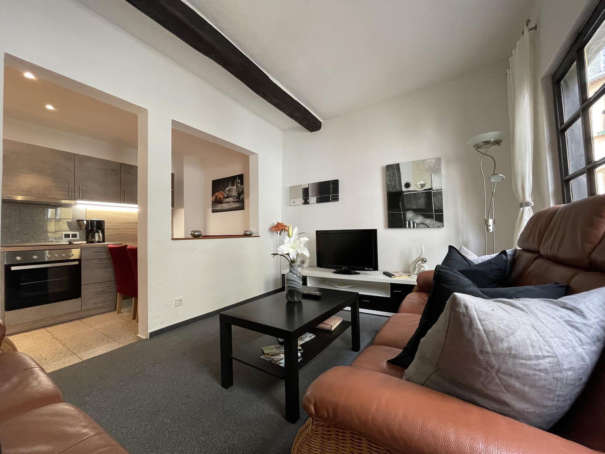 Im Eingangsbereich, 1. Etage befindet sich eine voll ausgestattete Küche mit Spülmaschine, Essecke und offenem Zugang zu einem gemütlichen Wohnzimmer das mit Sat-TV / Radio ausgestattet ist.