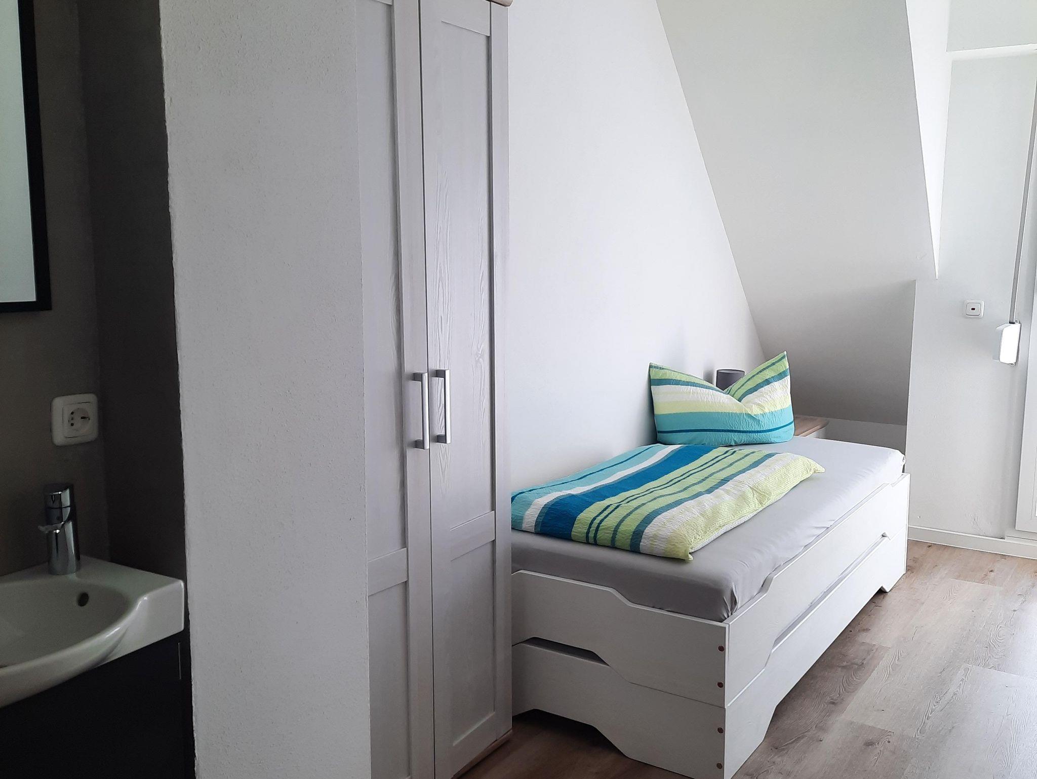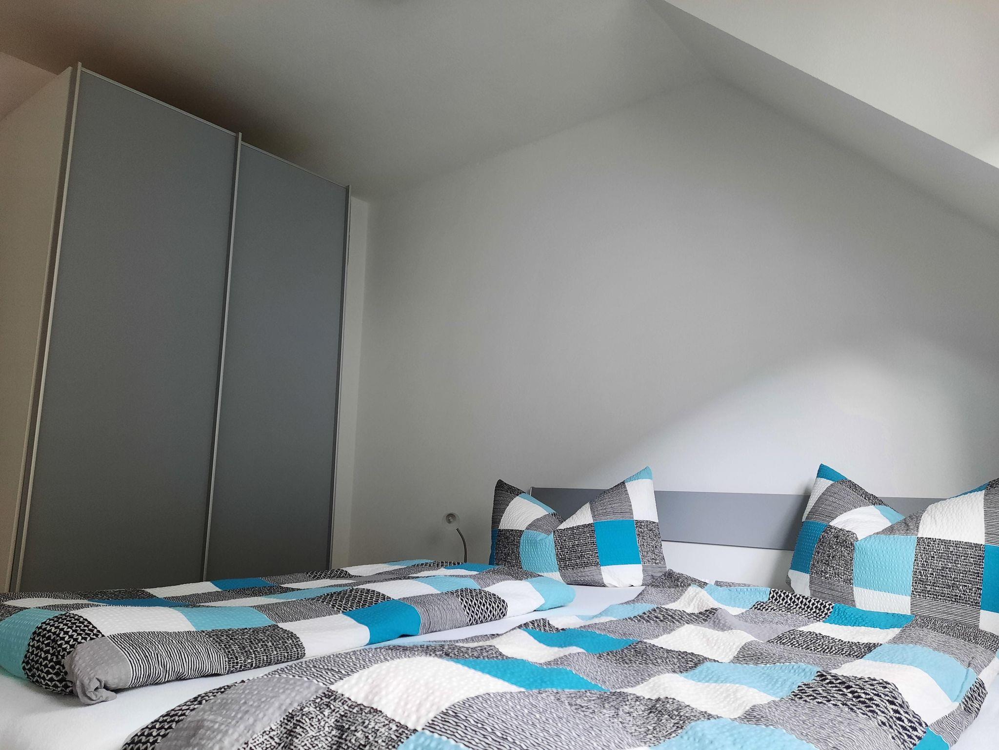Diese wurde in 2022 renoviert und neu eingerichtet. Sie ist ca. 60 qm groß und verfügt über ein Wohn-/Esszimmer mit Smart-TV, Küche, Doppelzimmer, Dusche/WC sowie einem weiteren separaten Schlafzimmer mit praktischen Stapelbetten. Hieraus können zwei bequeme Einzelbetten gezaubert werden, so dass bis zu vier Personen bei uns Urlaub machen können. Die Wohnung ist buchbar für maximal 3 Erwachsene oder 2 Erwachsene und bis zu 2 Kinder.