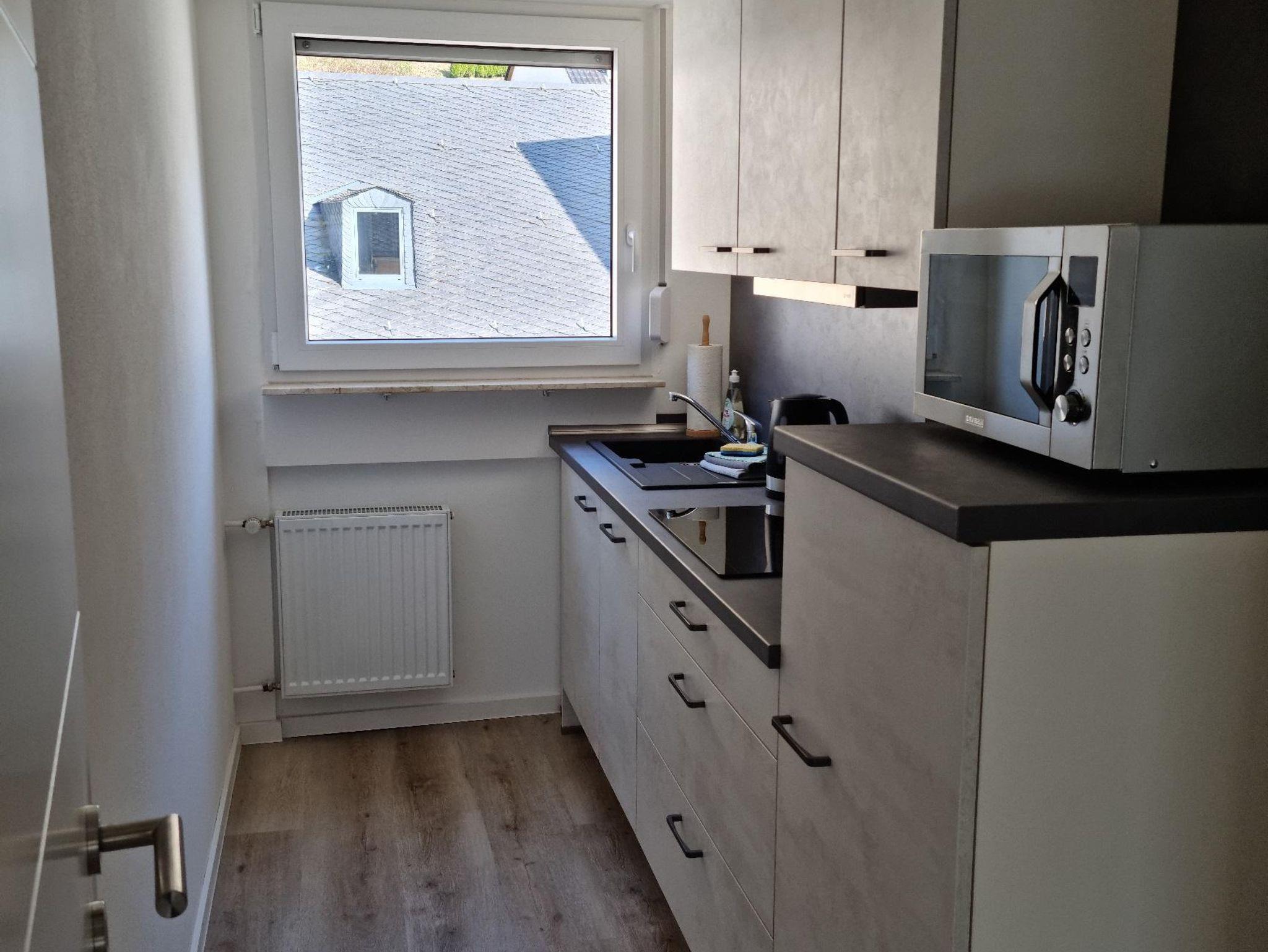 Die neue Küche ist ausgestattet mit einer Spülmaschine, Ceranfeld, Kombi-Mikrowelle mit Backofenfunktion, Kaffeemaschine, Wasserkocher, Toaster und einem Kühlschrank mit Gefrierfach.