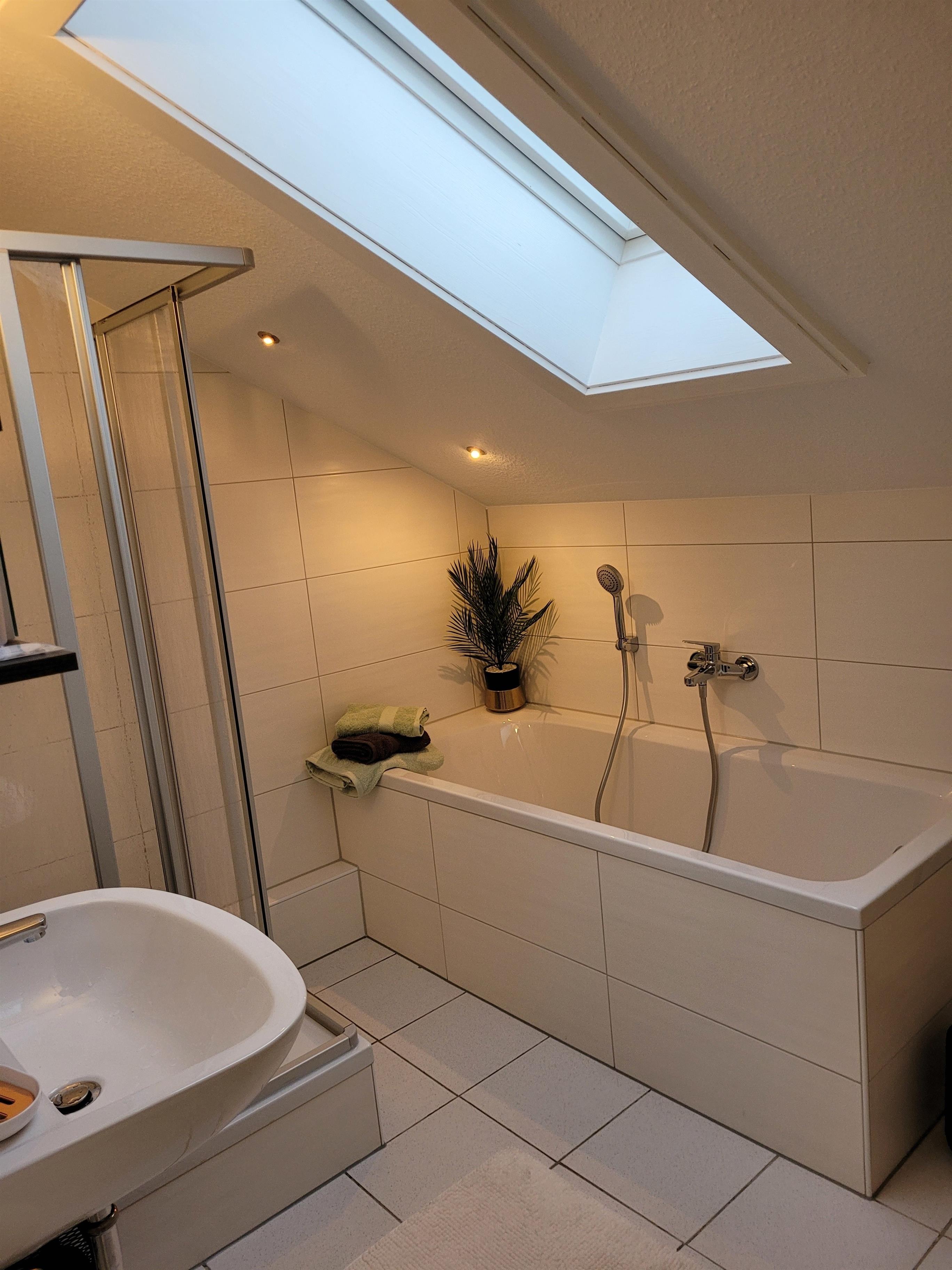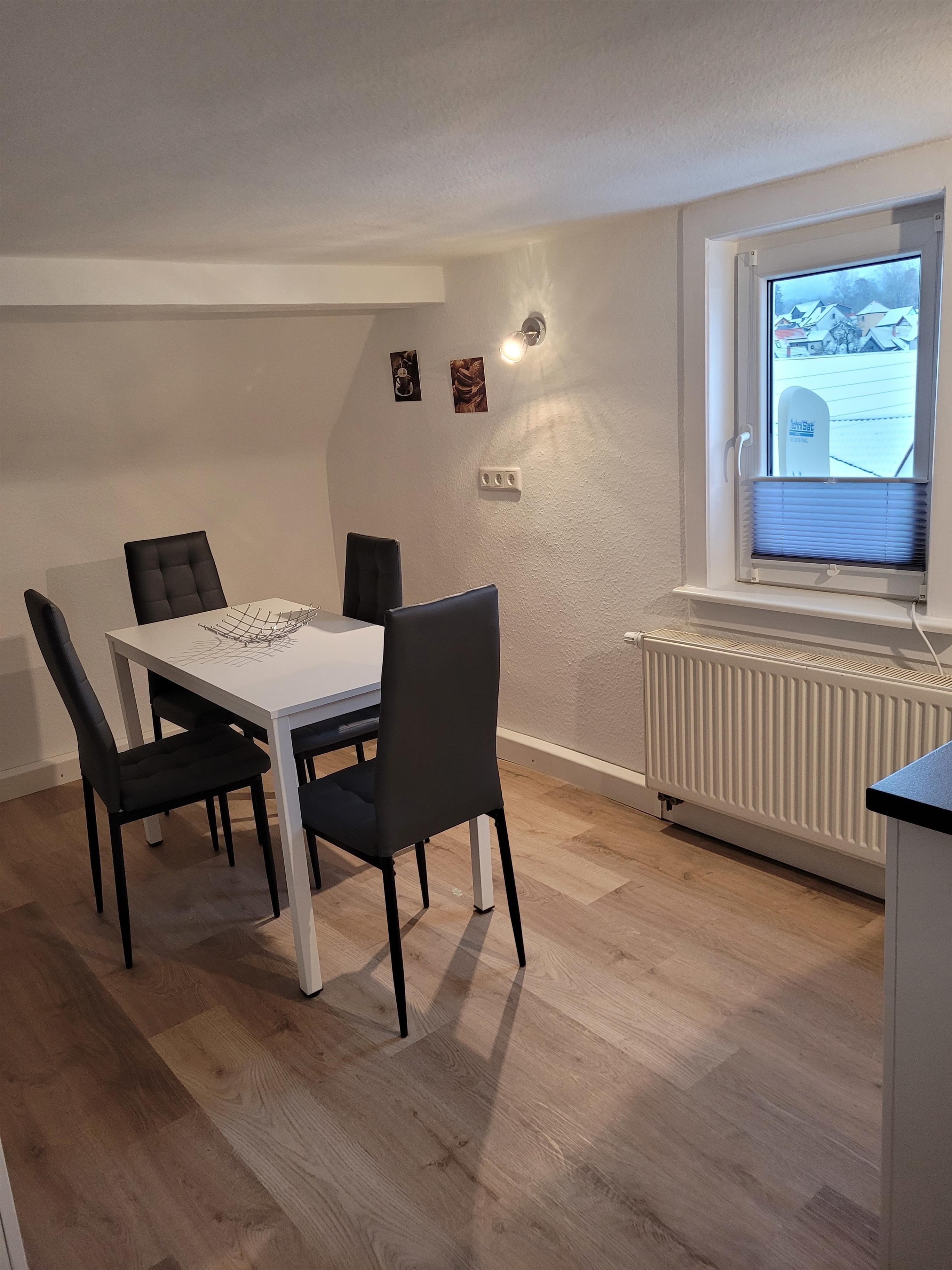 Die Ferienwohnung "Mei Auszeit" befindet sich mitten im grünen Herzen Deutschlands und bietet einen schönen Ausblick auf den Hausberg von Zella-Mehlis. Die Ferienwohnung ist eine charmante 50 qm große Altbauwohnung im Dachgeschoss und verfügt über einen Wohnraum mit Schlafsofa, ein Schlafzimmer mit Doppelbett, eine voll ausgestattete Küche mit Essbereich und ein Bad mit Dusche und Badewanne.