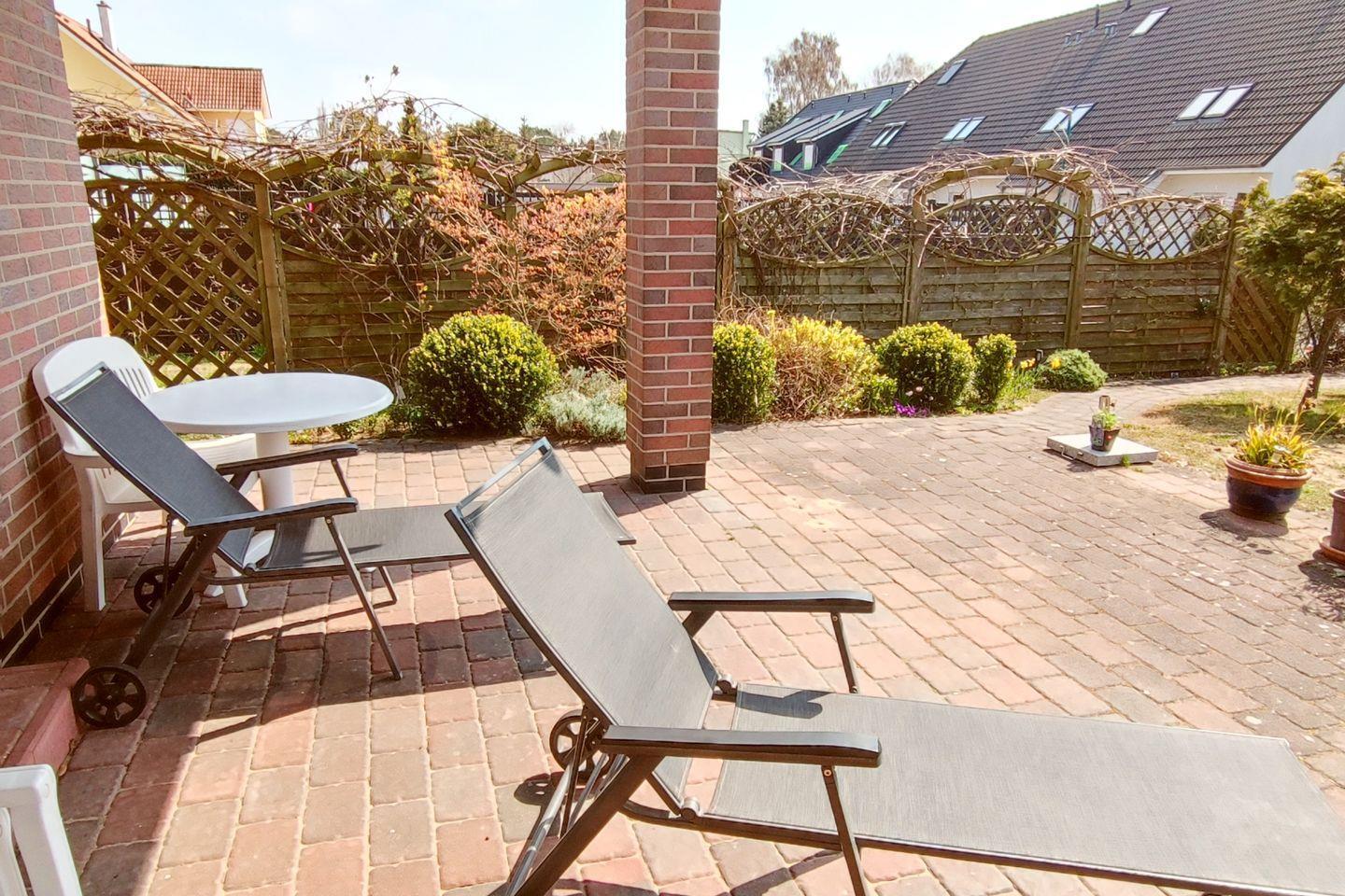 Ein Highlight der Ferienwohnung ist die überdachte Terrasse, die Ihnen einen Blick auf die umgebende Natur bietet. Hier können Sie die warmen Sommerabende bei einem Glas Wein ausklingen lassen oder einfach die frische Ostseeluft genießen. Der freistehende Charakter der Unterkunft sorgt zudem für eine herrliche Ruhe und Privatsphäre.