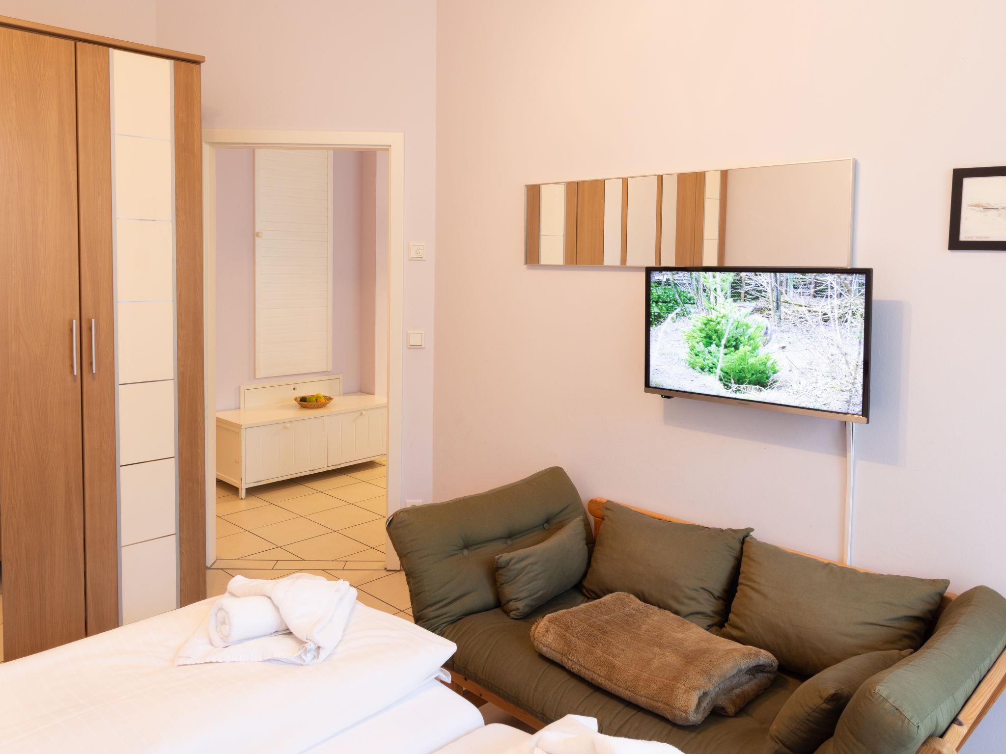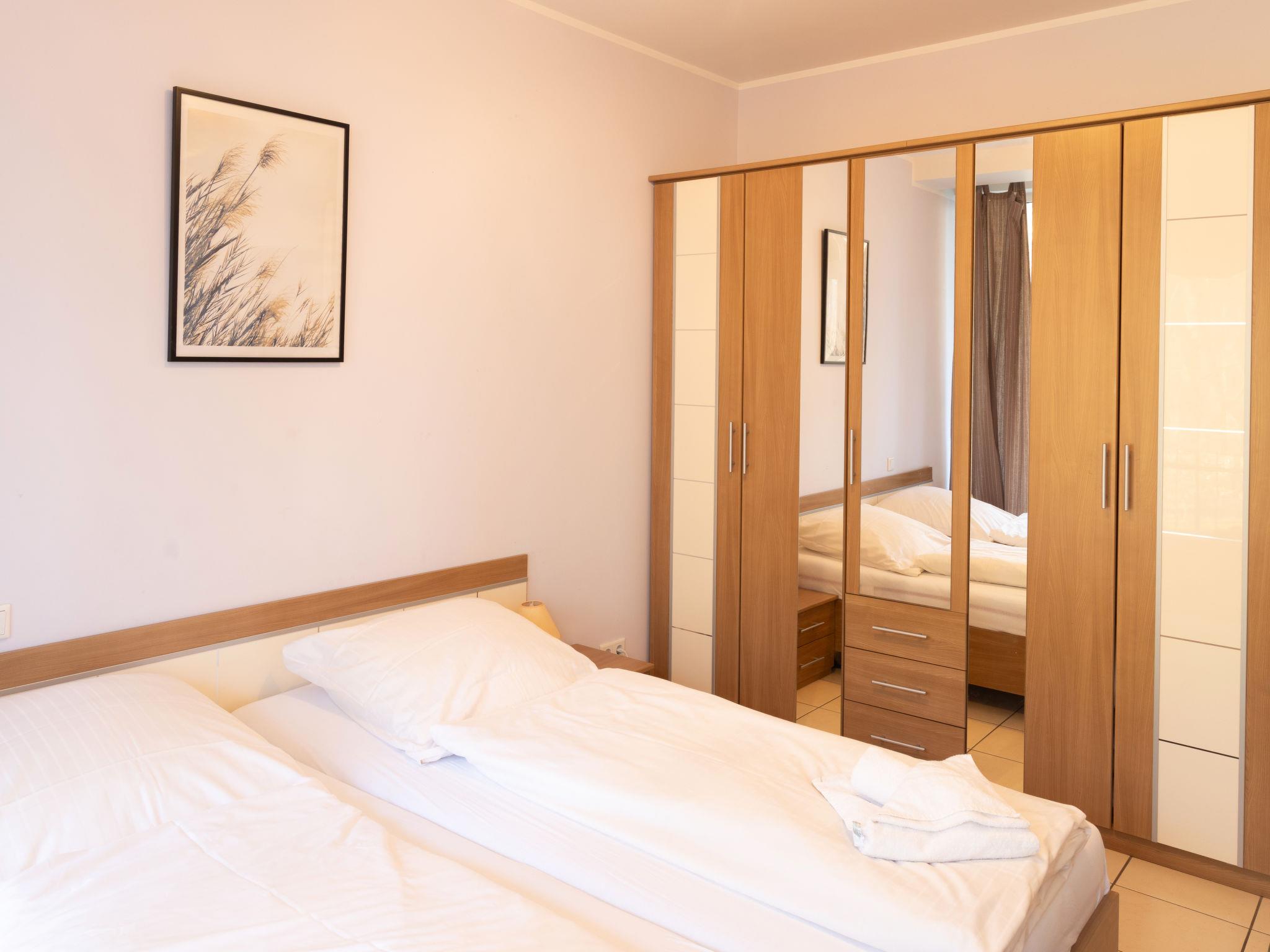 "Südwind App. 9", 2-room apartment 55 m2 on 1st floor. Modern and cosy furnishings: living/dining room with 1 double sofabed and cable TV (flat screen), radio. Exit to the balcony. 1 room with 1 double bed. Kitchenette (oven, dishwasher, toaster, kettle, microwave, electric coffee machine). Bath/WC. Balcony. Balcony furniture. Facilities: children's high chair, baby cot. Internet (WiFi, free). Parking (1 car) at the house. Please note: non-smokers only. Maximum 1 pet/ dog allowed. Smoke alarm.