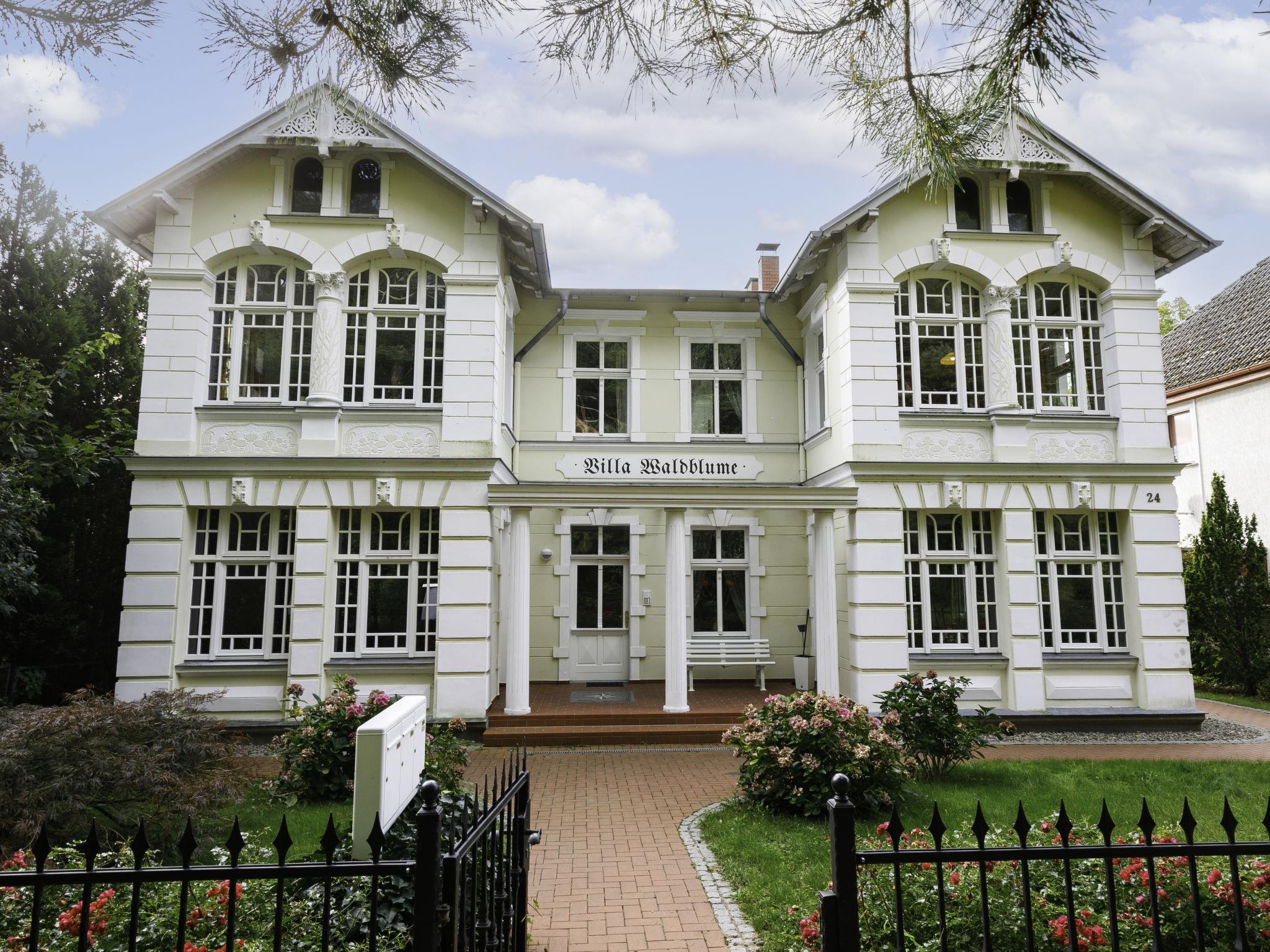 Apartment block "Villa Waldblume". In the resort 100 m from the centre of Zempin, 400 m from the sea, 400 m from the beach. In the house: central heating system. Parking on the premises. Supermarket 3.3 km, restaurant 130 m, bakery, café 400 m, bus stop 300 m, railway station 700 m, thermal baths "Bernsteintherme" 3.8 km. Golf course (18 hole) 21 km, surf school 3.8 km, tennis 3.6 km, minigolf 3.7 km.