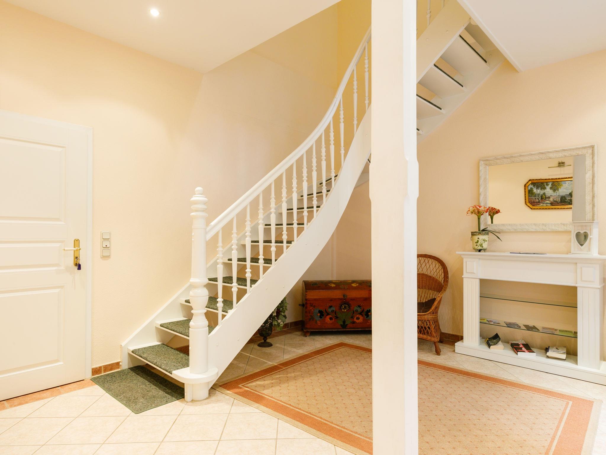 "Hortensie", 4-room apartment 115 m2, on the ground floor. Tasteful and cosy furnishings: living room with Scandinavian wood stove and satellite TV (flat screen), radio. Dining room. Exit to the terrace. 2 rooms, each room with 1 double bed. Kitchen (oven, dishwasher, toaster, kettle, electric coffee machine). Sep. WC, bath/shower/WC, double hand-basin. Terrace. Terrace furniture. Facilities: children's high chair, baby cot, logs (extra). Internet (WiFi, free). Please note: non-smokers only. Maximum 1 pet/ dog allowed. Smoke alarm.