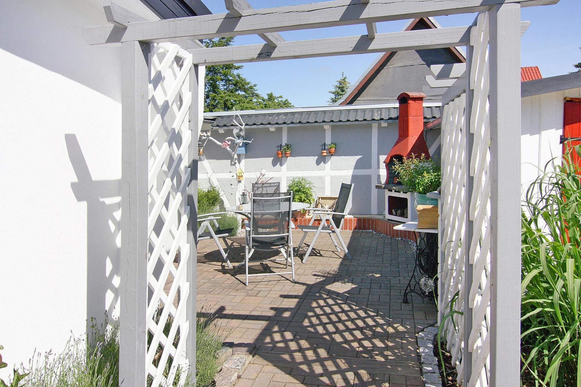 Stueetage: (Køkken(spisebord, kogeplade(induktion), kogeplade(induktion), kogeplade(induktion), kogeplade(induktion), elkedel, brødrister, kaffemaskine, mikrobølgeovn, opvaskemaskine , køle-fryseskab), Stue/soveværelse(dobbeltseng, Fjernsyn(parabol), radio, CD-afspiller, varme(gas)), soveværelse(feltseng), badeværelse(bruser, toilet, føntørrer)) sofahjørne, terrasse, havemøbler, parkering, Parasol, havepejs, Sengelinned inkl.