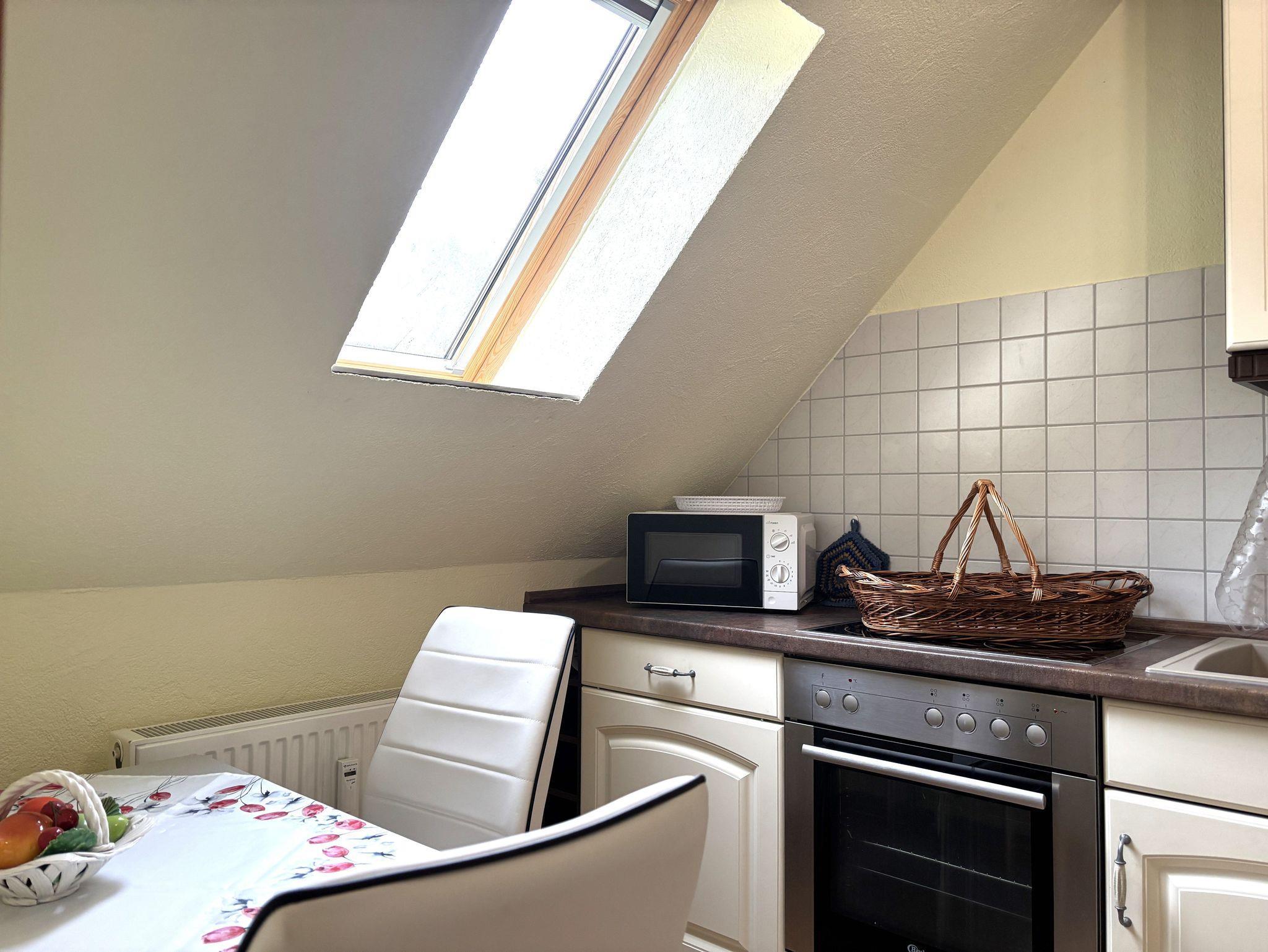 Die separate Küche verfügt über einen Herd mit Backofen, Kühlschrank mit Gefrierfunktion, Kaffeemaschine, Toaster, Wasserkocher und Sitzgelegenheit für 2 Personen. Ein großzügiges Badezimmer ist mit Dusche/WC und Fenster ausgestattet. WLAN steht Ihnen kostenfrei zur Verfügung. Am Grundstück stehen PKW-Stellplätze zur Verfügung.