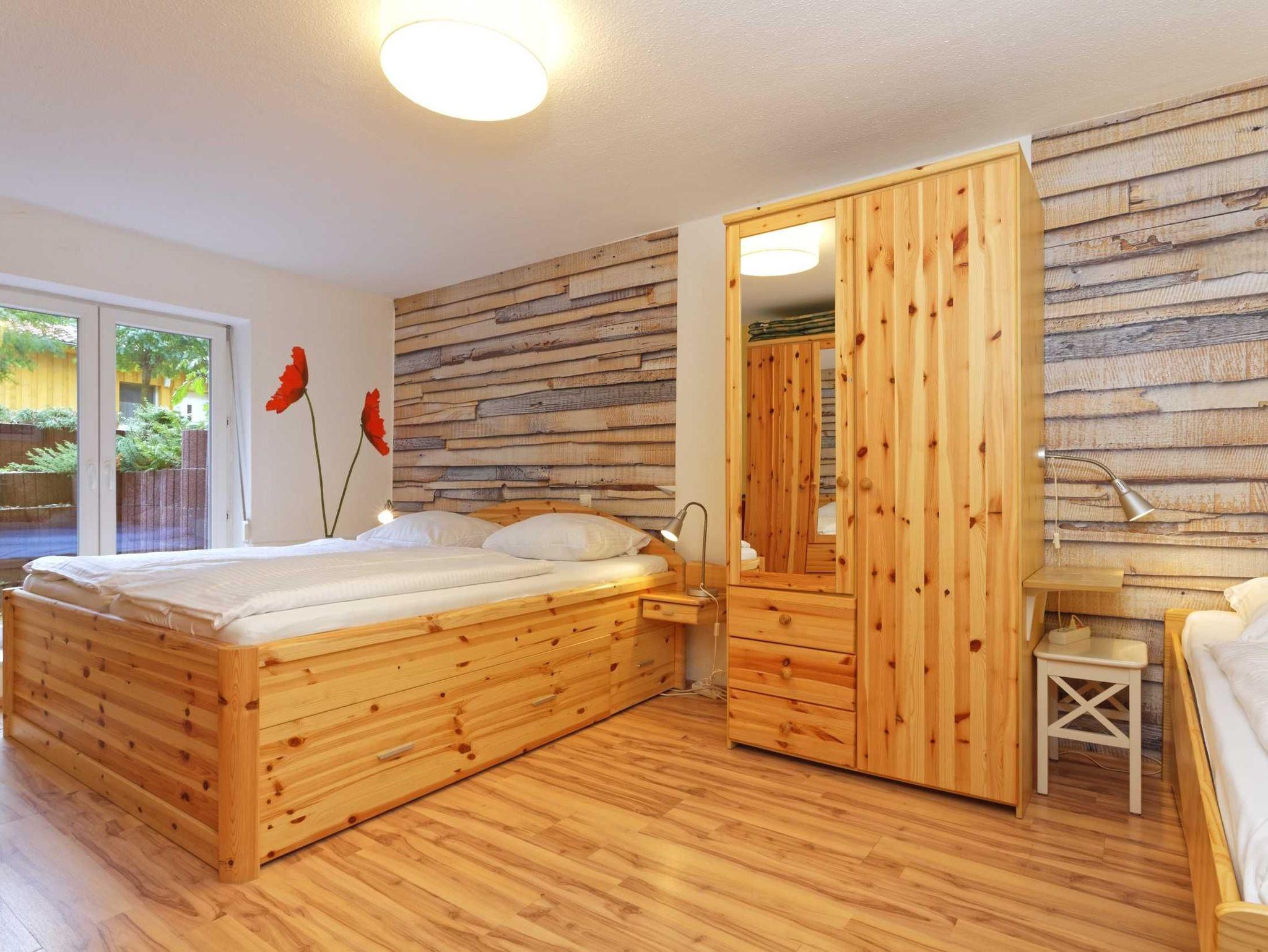 1 Schlafzimmer mit Schrank & Doppelbett (1,80 x 2 m ) & Einzelbett (0,90 x 2 m) & Flachbild-TV