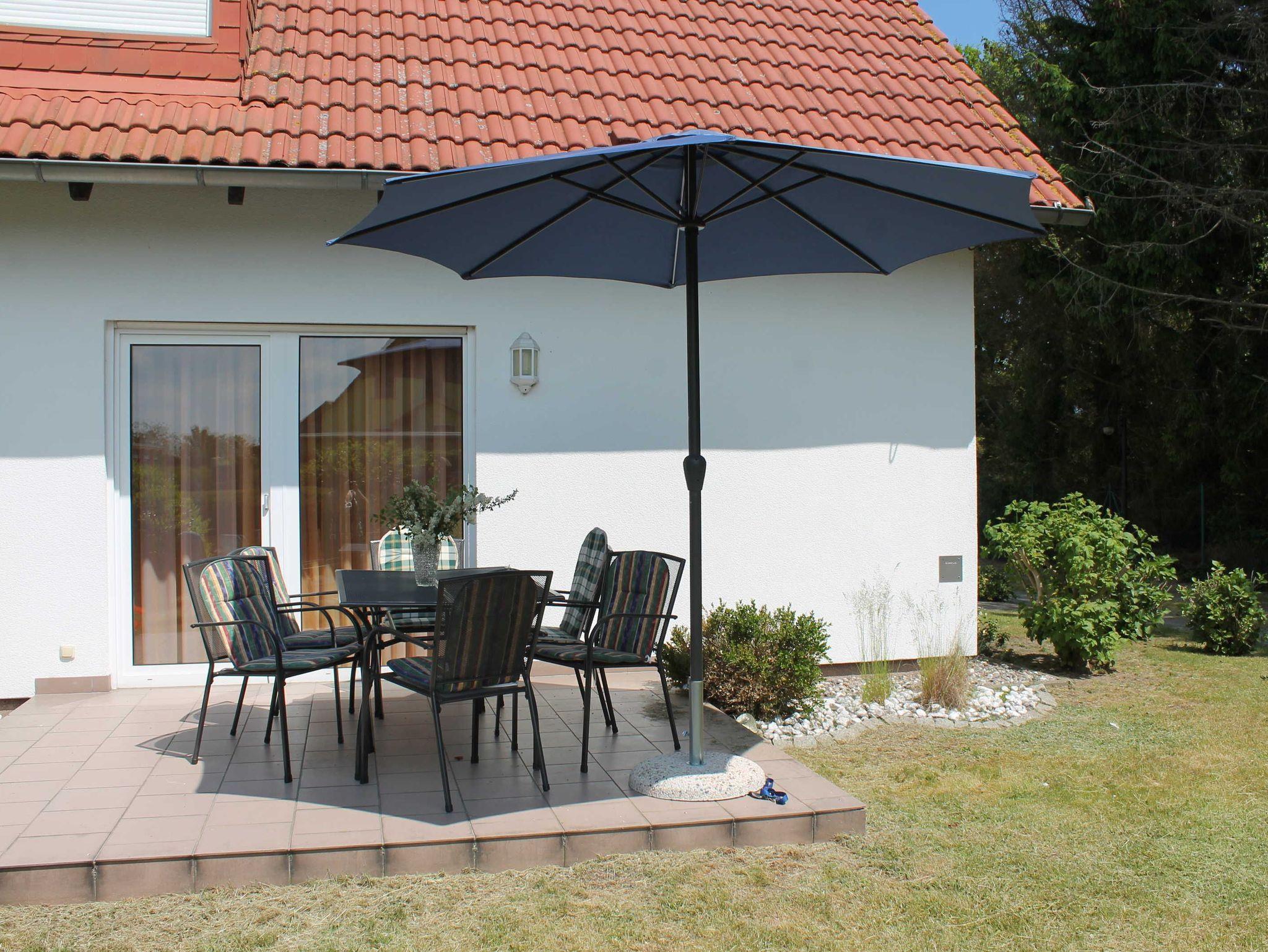 Vom Wohnzimmer aus gelangen Sie auf die separateTerrasse und in den Garten mit Sitz- und Liegemöglichkeiten. Im hinteren Bereich des Gartens befindet sich ein Grillplatz.