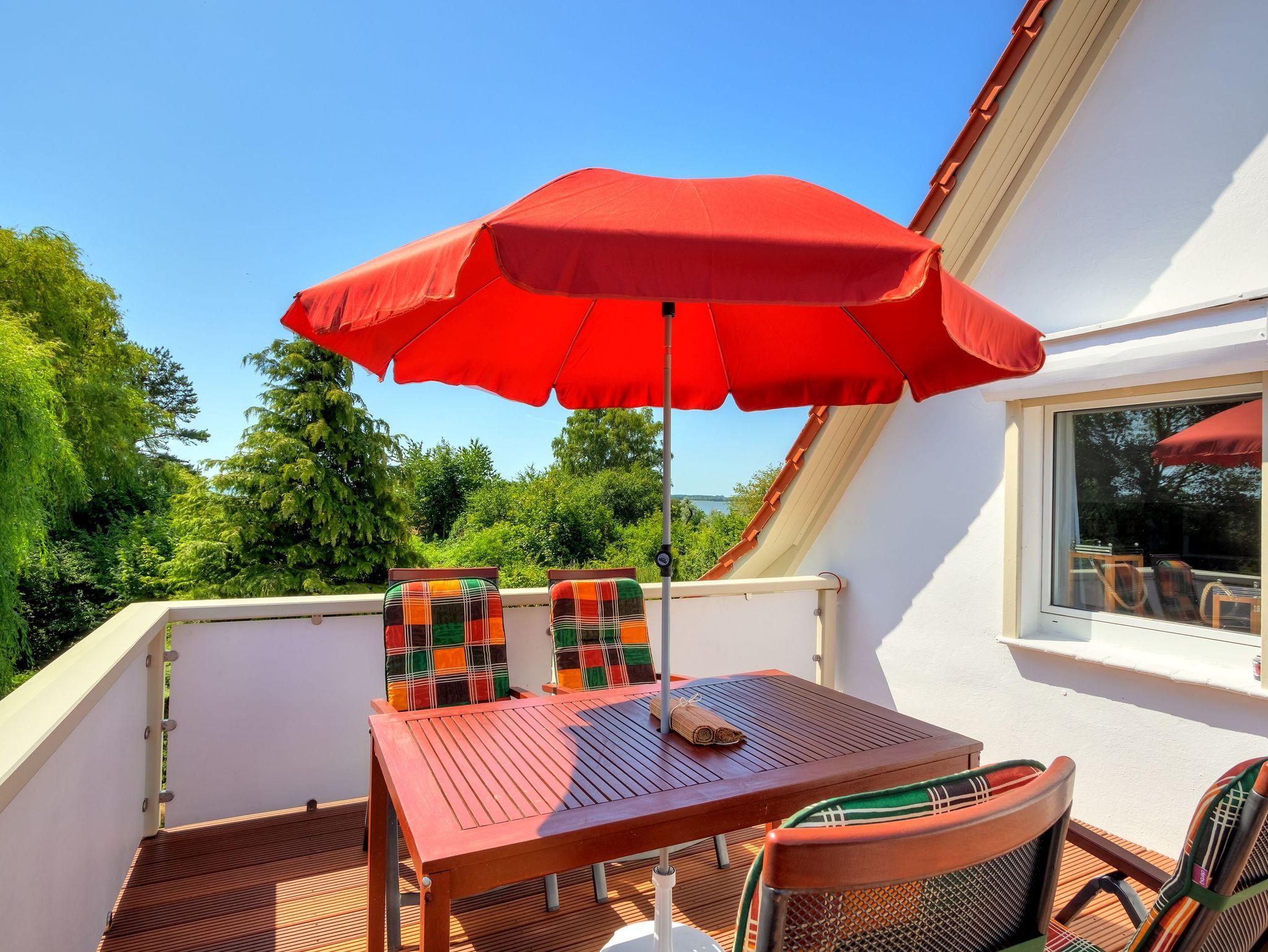 Das Ferienhaus bietet zwei gemütliche 3-Raumwohnungen mit Blick auf das Achterwasser, ideal für 2 bis 6 Personen. Die Wohnungen sind über eine interne Treppe verbunden und verfügen über WLAN.