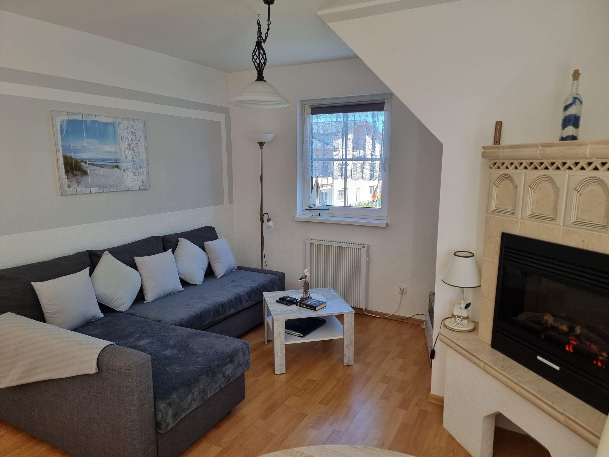 Die 2-Zimmer Ferienwohnung liegt im ersten Obergeschoss einer kleinen ruhigen Ferienanlage. Die Ferienwohnung mit 47m² Wohnfläche, ist geräumig, komfortabel und individuell eingerichtet und verfügt über WLAN. Das Wohnzimmer ist mit einem Elektroeckkamin, Eckcouch, Flachbild TV, Blu-ray Player, Bücher und Kinderspiele ausgestattet und bietet somit auch Abwechslung für einen gemütlichen Abend.