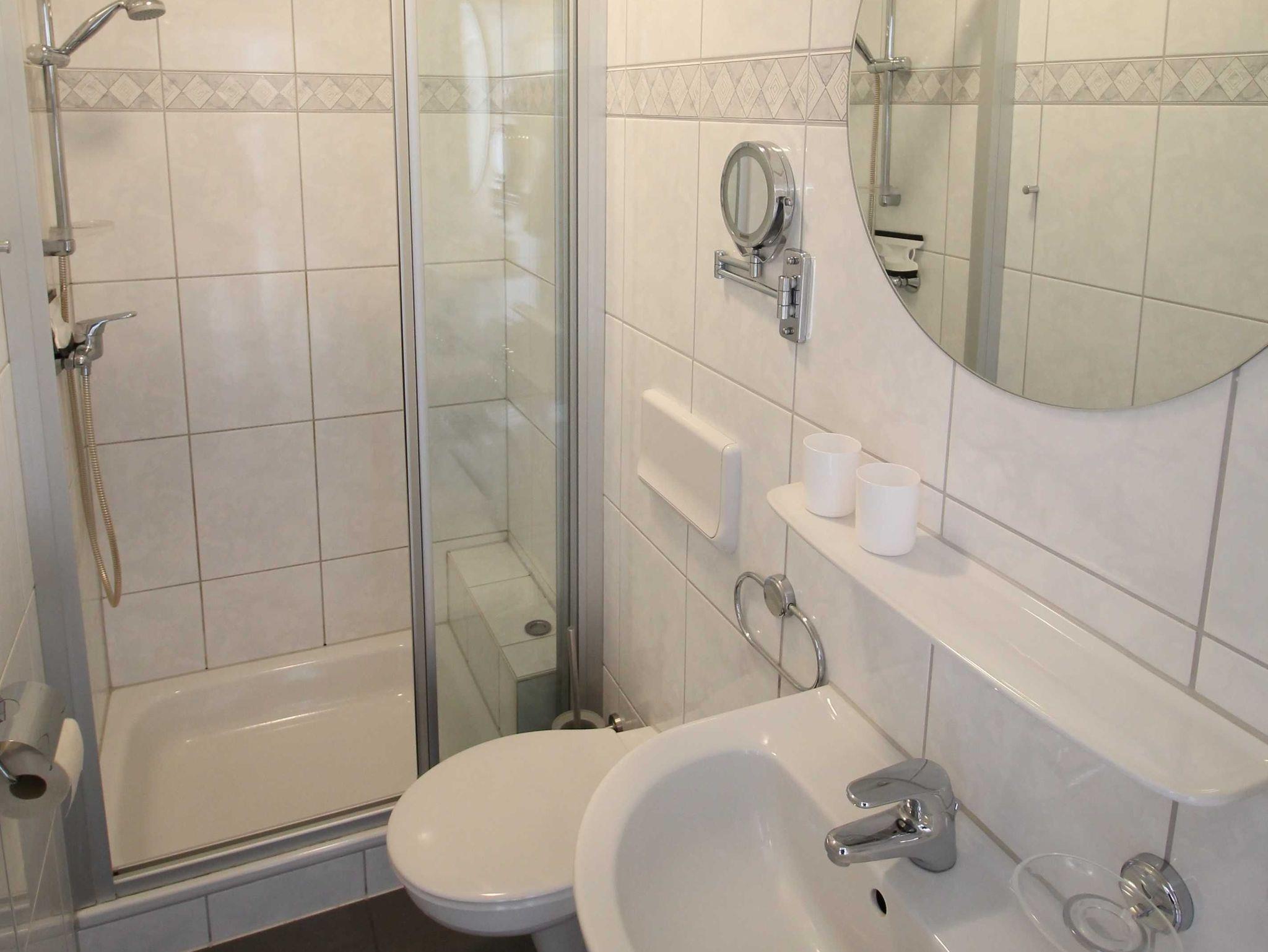 Sie wohnen in einer 45 qm großen 3-Raum Komfort-Dachgeschoß-Wohnung für 4 Personen. Der helle Wohnbereich hat eine komfortable Wohnlandschaft mit Essbereich. Die angrenzende, offene Küchenzeile ist ausgestattet mit einen 2 Platten Kochfeld, Kühlschrank, Spülmaschine und Kaffeemaschine. Über eine Raumspartreppe (steile, gewendelte Treppe, nicht geeignet für Ältere & Kleinkinder) erreichen Sie die beiden Schlafräume. Ein Schlafraum verfügt über ein Doppelbett mit Kleiderschrank, das andere Schlafzimmer hat 2 Einzelbetten und einen Kleiderschrank. Das Bad verfügt über eine Dusche, Waschbecken und WC. Die Dachgeschosswohnung ist mit Direktwahltelefon, WLAN und LED TV ausgestattet. Auf dem Grundstück steht den Gästen eine Terrasse zur Verfügung. Die Erstausstattung Bettwäsche und Handtücher ist bereits inklusive.