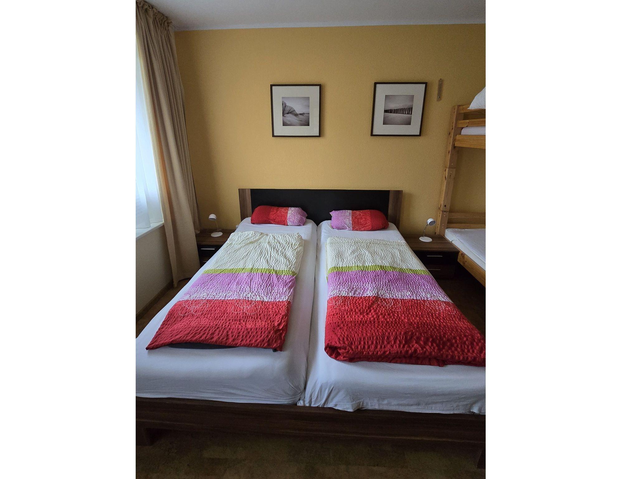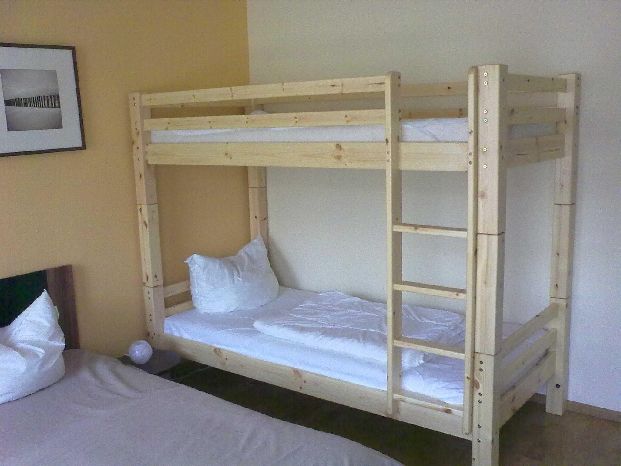 1 Schlafzimmer mit Doppelbett und Etagenbett