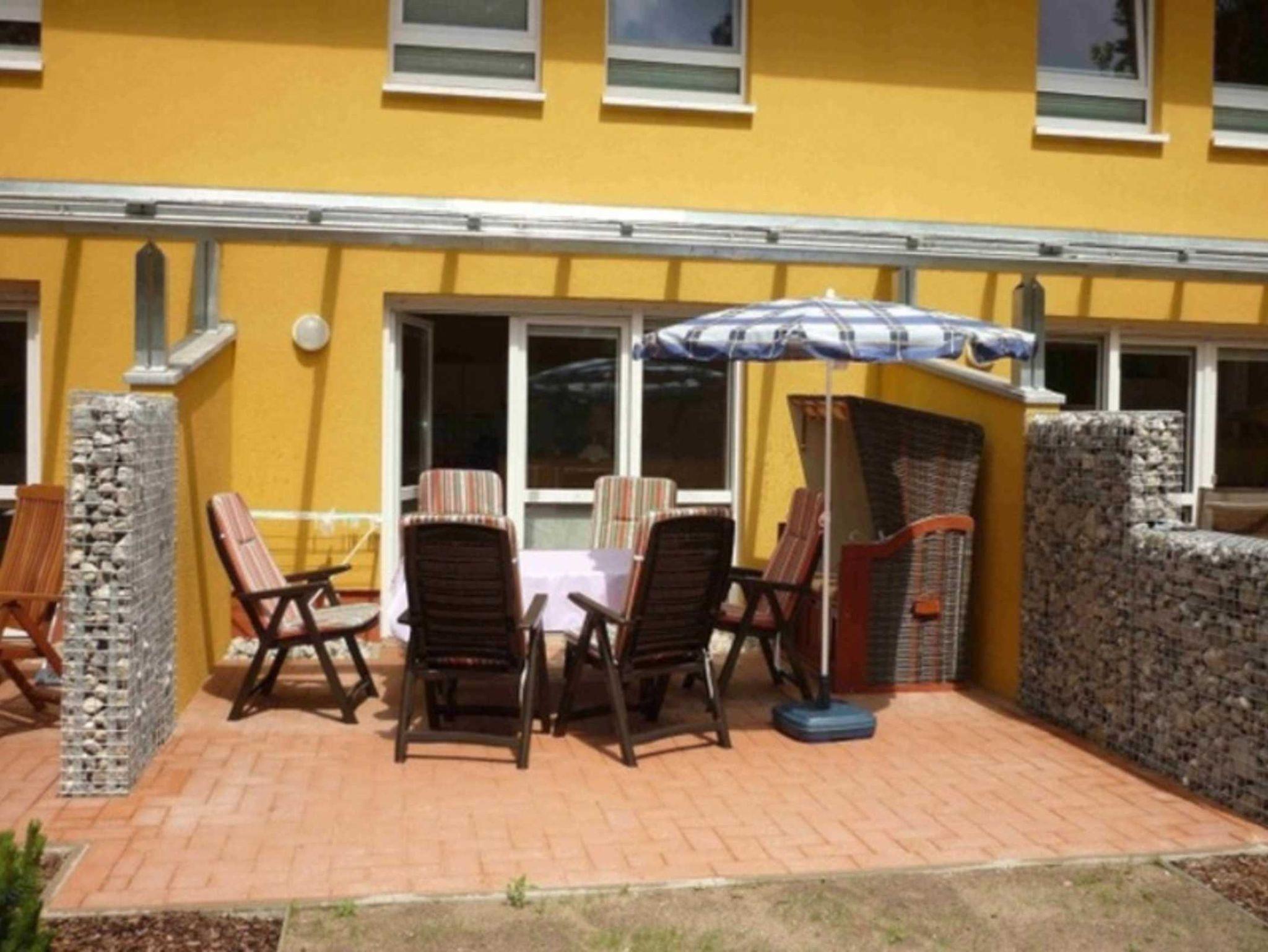 1 Terrasse mit 43m² Garten mit Gartenmöbeln & Strandkorb