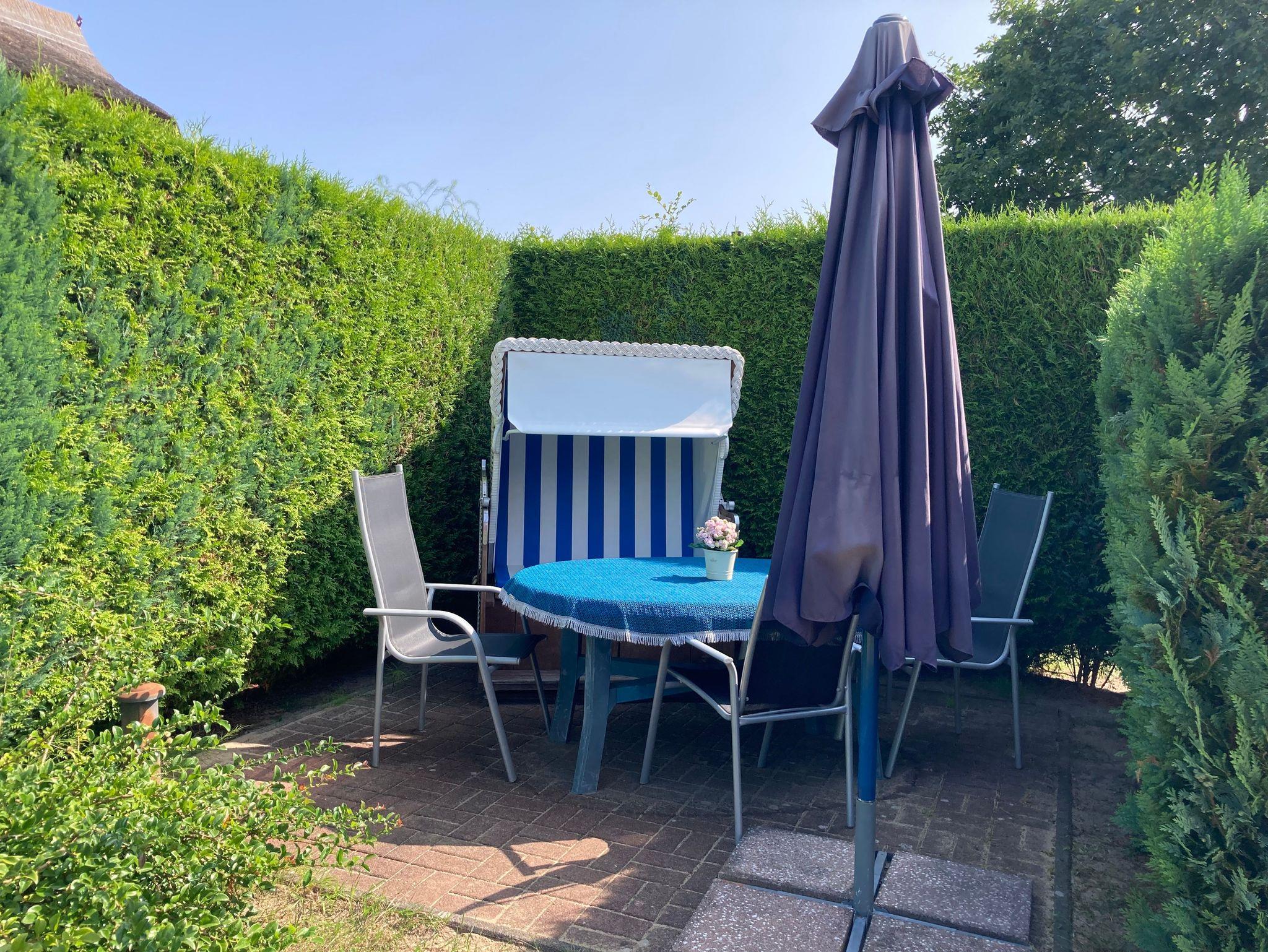 Eine seperate Terrasse am Haus mit Strandkorb und Gartenmöbeln bietet ausserdem die Gelegenheit abends zu grillen. Bettwäsche kann für 5,00 € p.Person dazugebucht werden, Handtücher sind mitzubringen.