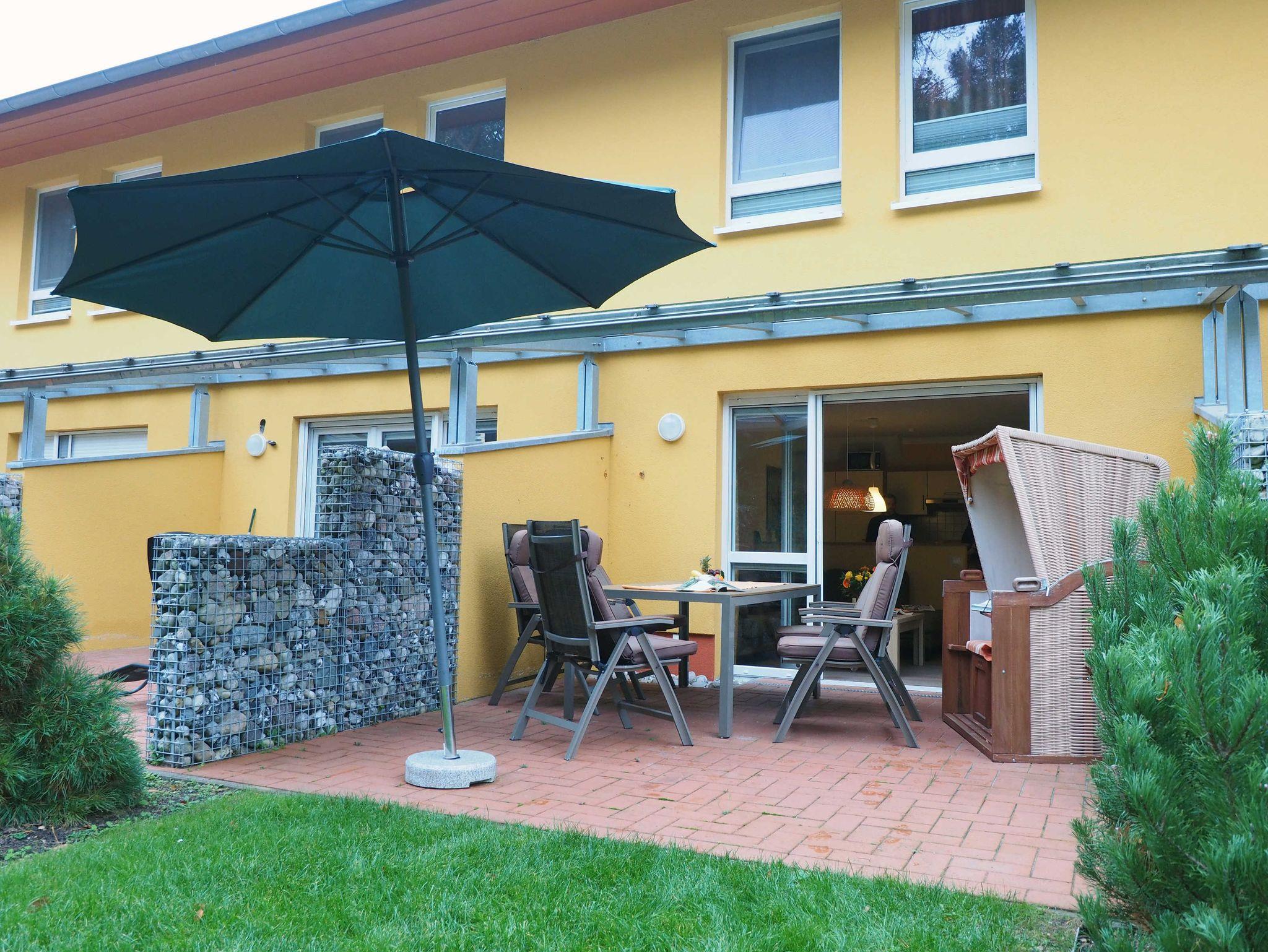1 Terrasse mit 43m² Garten mit Gartenmöbeln & Strandkorb