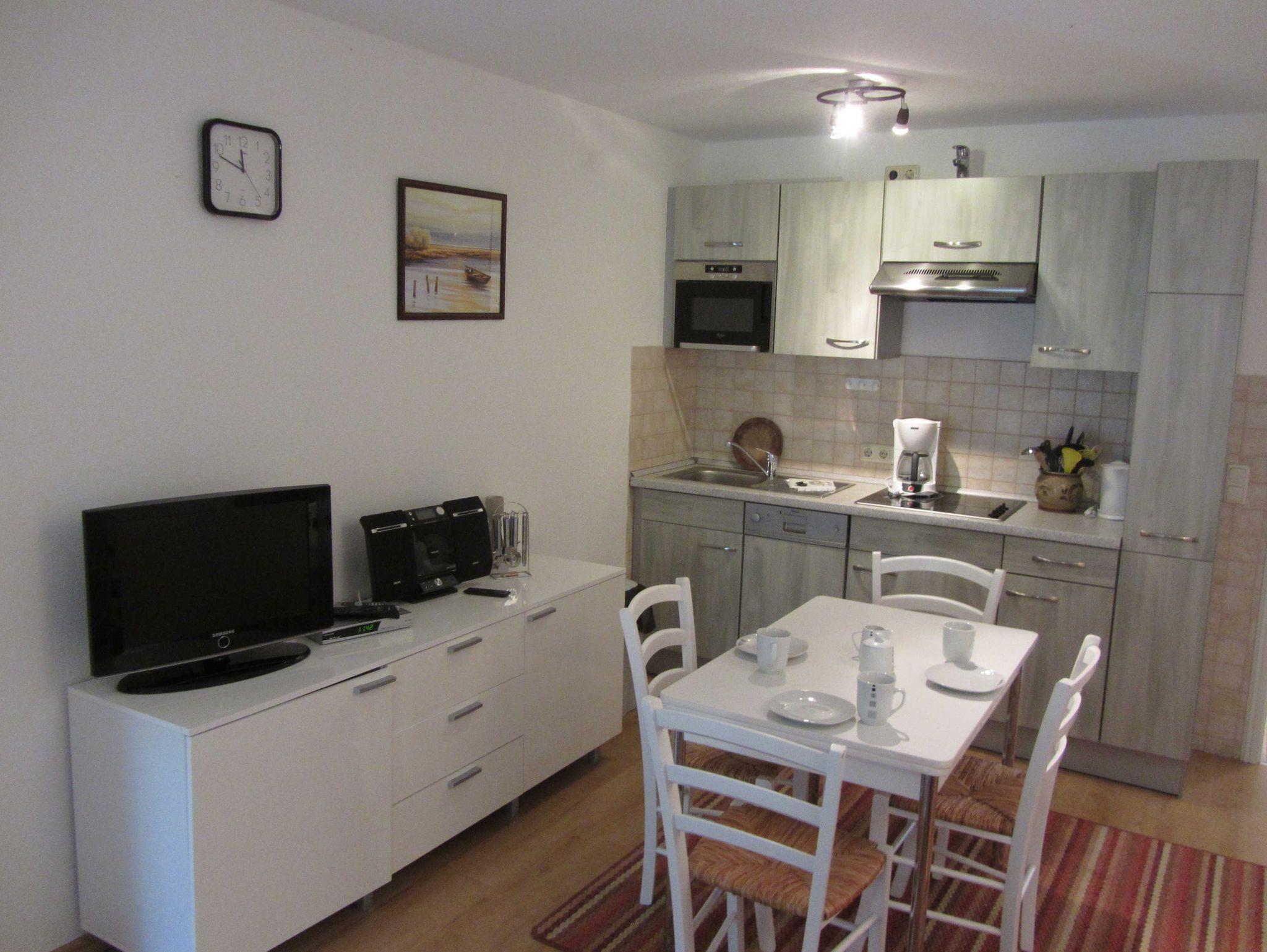 1 Wohnraum mit gut ausgestatteter Küche + Essecke,
