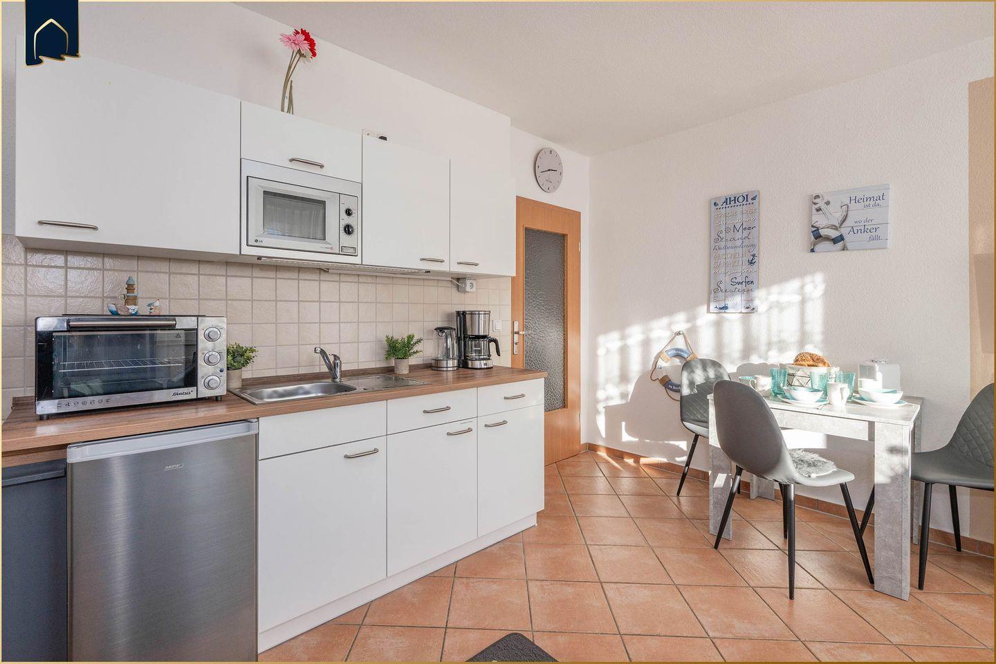Nur 100 Meter bis zum Strand. Die modern renovierte Ferienwohnung Meerweh bietet auf 48 m² ein gemütliches Ambiente mit offenem Wohn-Essbereich, Schlaf- und Wohnzimmer, komplett ausgestatteter Küche sowie Balkon. WLAN, zwei TVs, Privatparkplatz und haustierfreundliche Ausstattung sorgen für Komfort.