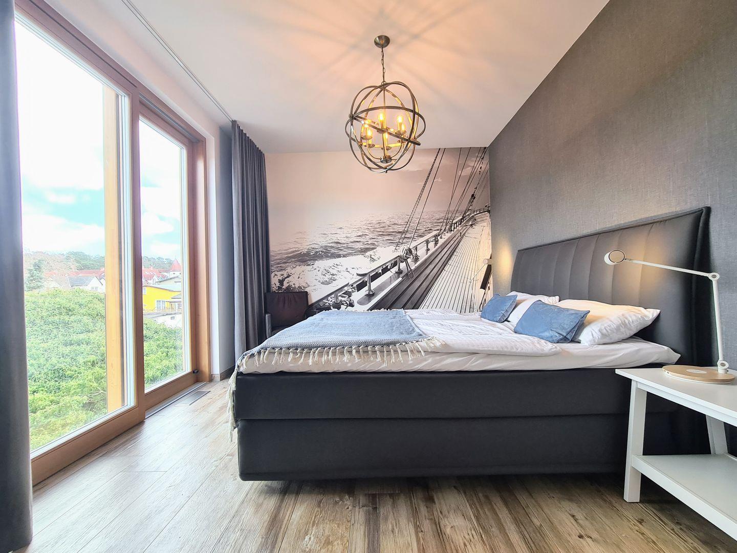 - 1 Schlafzimmer mit einem 180x200 Boxspringbett und Arbeitsplatz mit LAN-Anschluss, TV