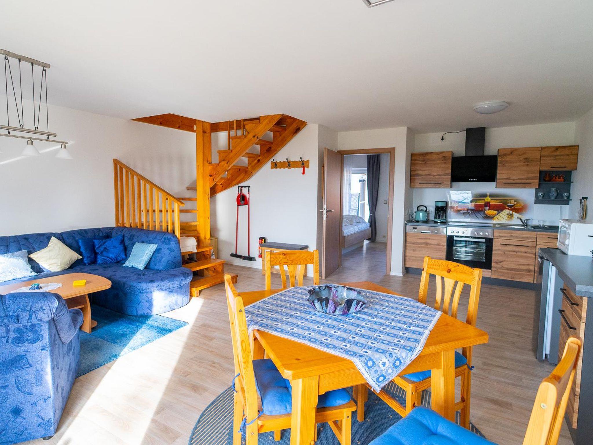 Erleben Sie vom Balkon im ersten Obergeschoss aus einen herrlichen Ausblick in die Ferne. Mit etwas Glück und Geduld können Sie wie die faszinierende Tierwelt des Waldes beobachten, ganz ungestört. Auf großzügigen 60 Quadratmetern können Sie sich optimal entspannen und wohlfühlen.