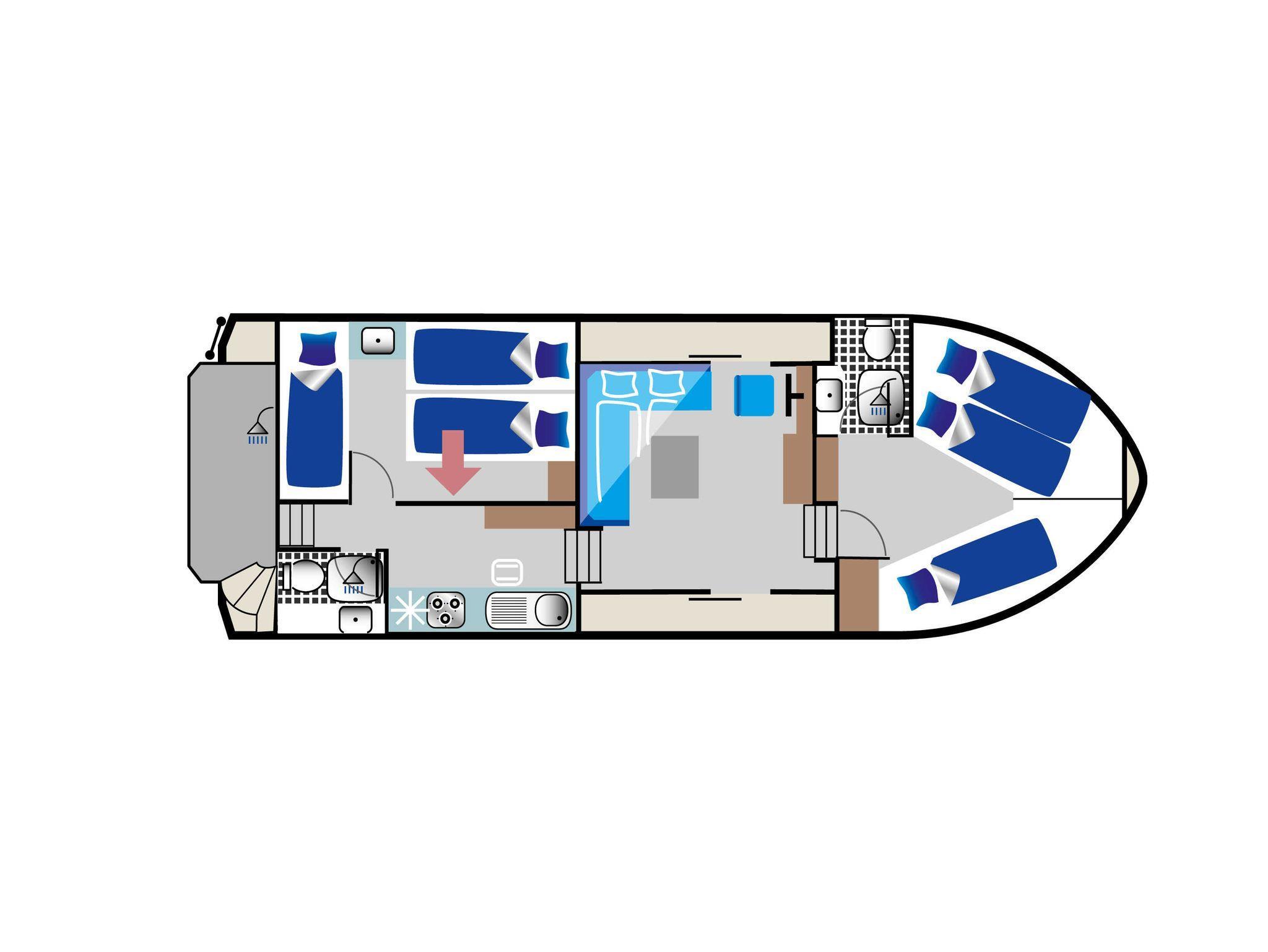 Dieses moderne Hausboot im traditionellen Stil ist leicht zu manövrieren und bietet allen Komfort über und unter Deck. Es ist ideal für drei Paare oder mehrere Familien.