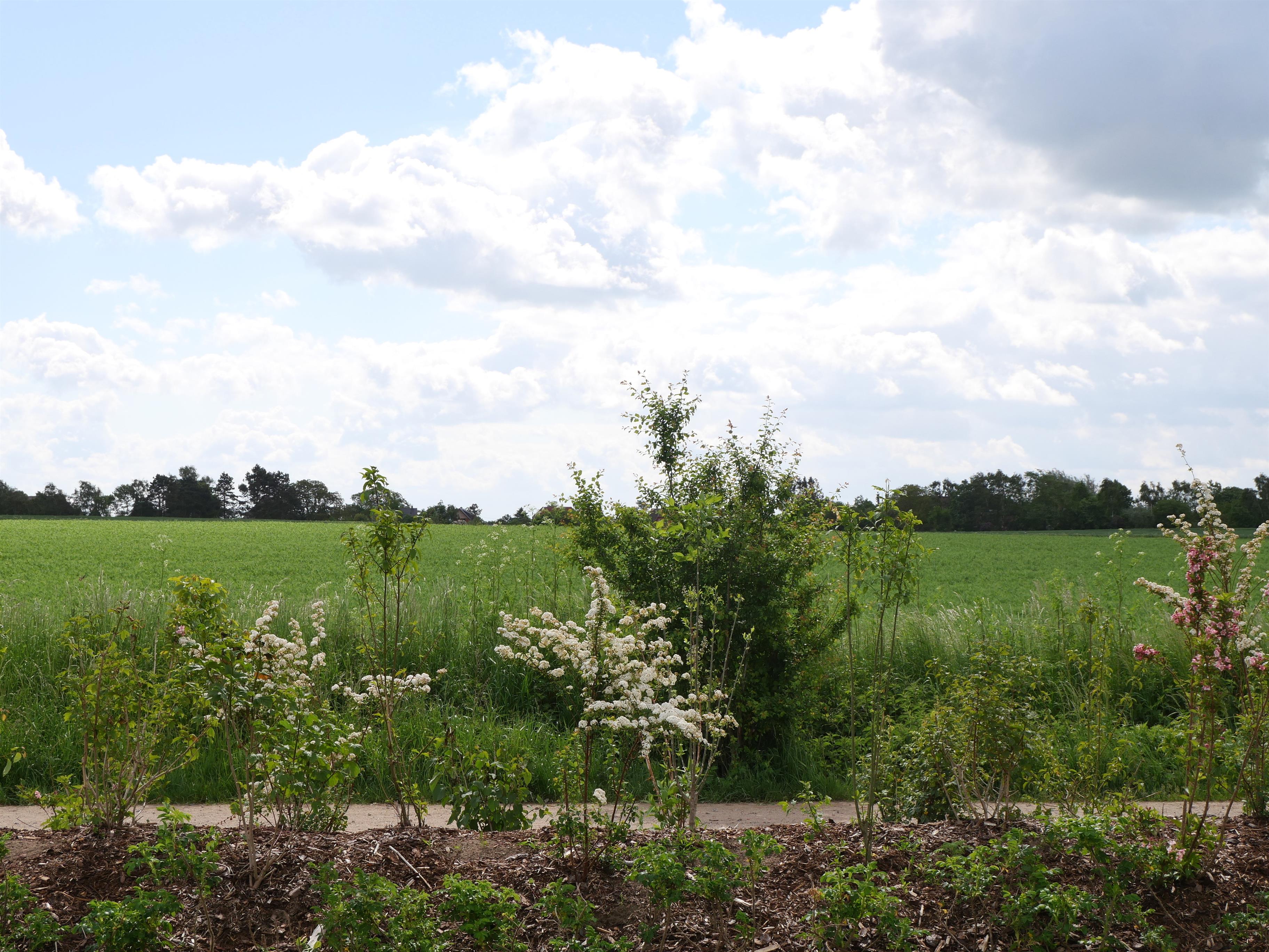 Das Haus ist freistehend am Wegesrand und einen unverbauten Blick auf die Ostsee und umliegenden Felder des Erholungsortes Zierow