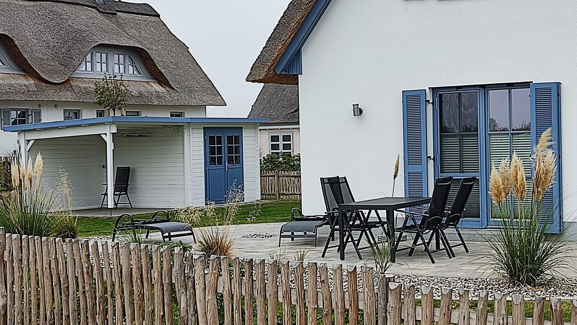 Im Garten zur Süd-West-Seite können Sie es sich auf den Gartenmöbeln bequem machen und Ihre „Seele baumeln“ lassen. Zusätzlich sind Gartenliegen und ein Sonnenschirm zum Entspannen im Garten vorhanden. Zum Grillen steht Ihnen ein Elektrogrill zur Verfügung. Zwei Stellplätze, mit einer Wandladestation für Hybrid- und E-Autos, befinden sich direkt am Ferienhaus.