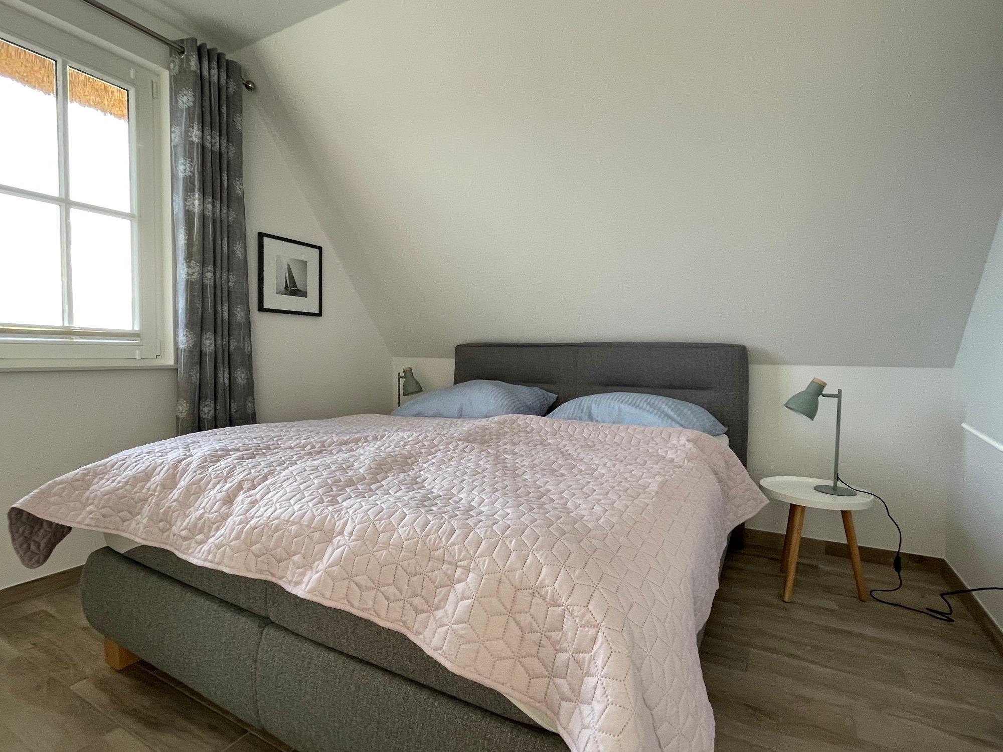 Im oberen Bereich stehen Ihnen zwei Schlafzimmer mit je einem Boxspringbett zur Verfügung.[nbsp] Im 2. Schlafzimmer befindet sich noch ein weiteres Einzelbett. Jedes Schlafzimmer ist mit ausreichend Ablagemöglichkeiten für Kleidung, Kommoden und bequemen Sitzgelegenheiten ausgestattet.