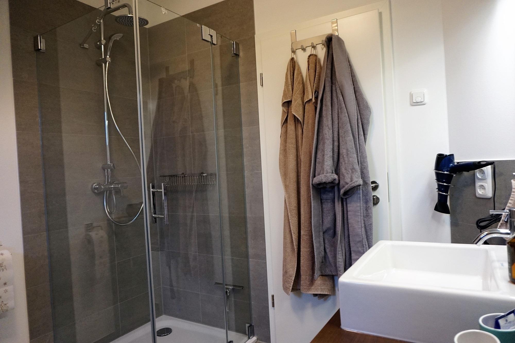 Zum Naturstrand (Hundestrand) sind es nur 600 m. Der zweite Strandabschnitt ist ebenfalls gut zu Fuß zu erreichen und bietet mit einem Cafe, Minigolfanlage, Beachvolleyball und einem großen Spielplatz am Strand viel Vergnügen für Groß und Klein. Im großem Wohnzimmer sorgt ein Kamin für wohlige Wärme an kalten Tagen und Sie können es sich auf der Couch oder auf dem Lesesessel mit einem der zahlreichen Bücher oder Spiele gemütlich machen. Die separate Küche[nbsp]ist mit modernen Küchengeräten ausgestattet. Der Esstisch in der Küche bietet Platz für die ganze Familie. Auf Wunsch können Sie einen Hochstuhl dazu stellen. Für die Vierbeiner stehen Fressnapf und zwei Hundekörbe zur Verfügung. Es liegen spezielle Decken bereit um die Einrichtung zu schonen. Entspannung finden Sie im Duschbad mit Sauna und WC im Erdgeschoss. Ein Aufguss steht bereit. Die Dusche ist bodengleich und verfügt über eine Wellnessbestrahlung. Der Hauswirtschaftsraum ist direkt an neben der Küche und[nbsp]ist[nbsp]mit Waschmaschine und Trockner[nbsp]sowie Putzuntensilien ausgestattet.