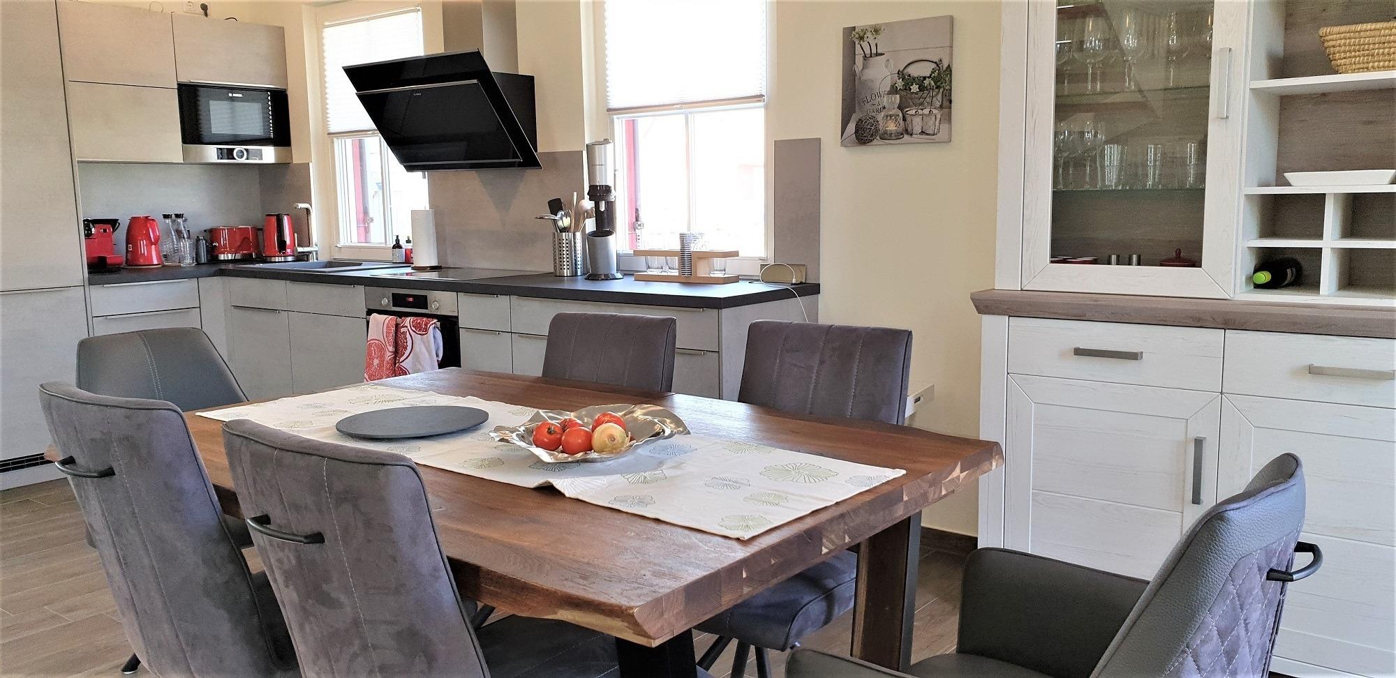 Das Ferienhaus wurde 2020 erstellt und befindet sich im Reethausgebiet "De Poeler Drift" in Zierow. Der große Wohnbereich ist mit einer modernen Wohnküche voll ausgestattet. Ein Kamin sorgt an kalten Tagen für wohlige Wärme. Der komfortable Ess- und Wohnbereich ist ideal möbliert, um mit der ganzen Familie zu Relaxen, zu Kochen und die Urlaubstage zu Genießen. Die Wellnessdusche mit Sauna im Erdgeschoss bietet nach langen Strandspaziergängen eine gute Erholung. Das Gäste-WC gegenüber rundet das Angebot im Erdgeschoss ab.