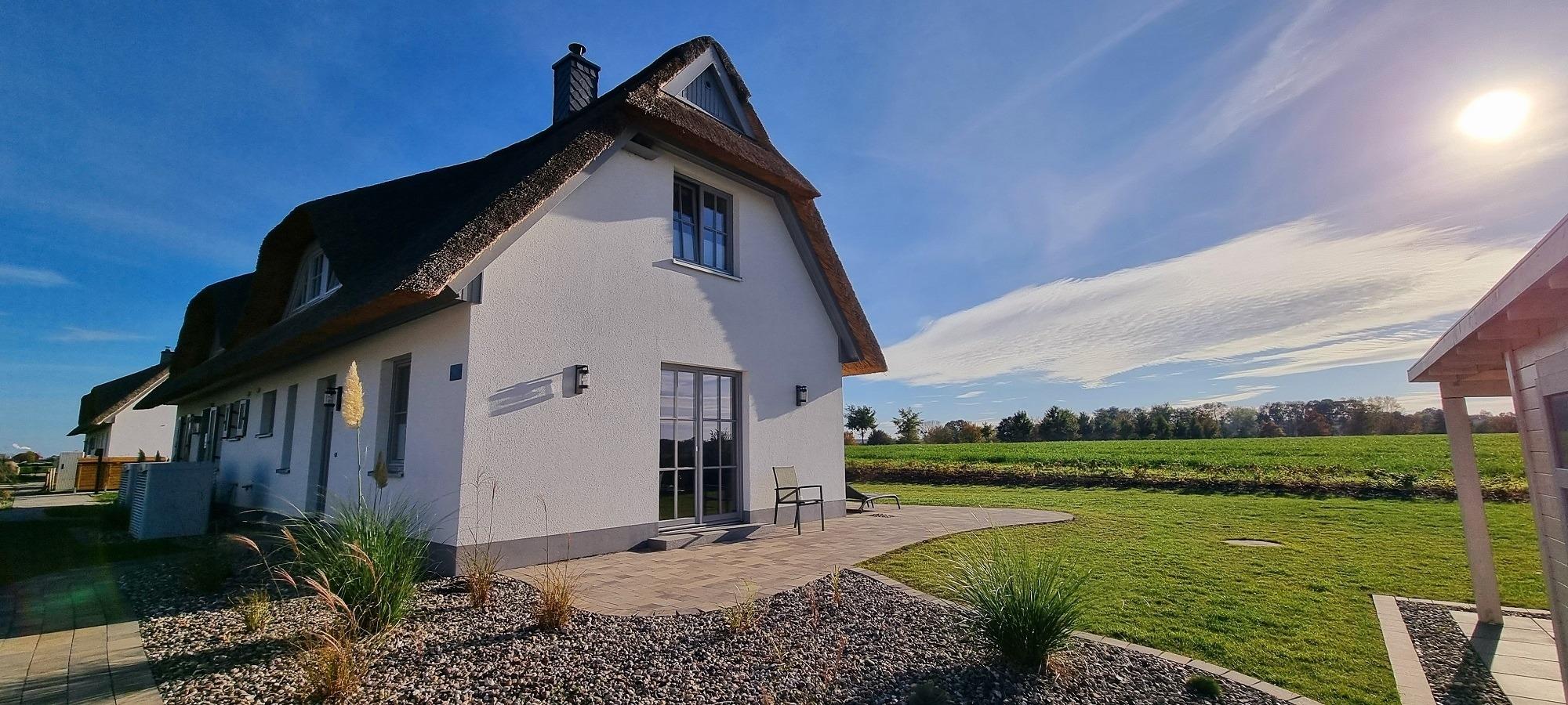 Das Reethaus „Majupani“ liegt ruhig am Rande des Feriengebiets „De Poeler Drift“ in Zierow. Kein Durchgangsverkehr stört die Ruhe und die Aussicht über die grünen Felder. Kinder können ungestört auf dem Spielplatz der gemeinsamen Grünfläche toben und zum familienfreundlichen, flach abfallenden Sandstrand gelangen Sie abseits vom Autoverkehr über einen Fußweg (ca. 800 Meter).