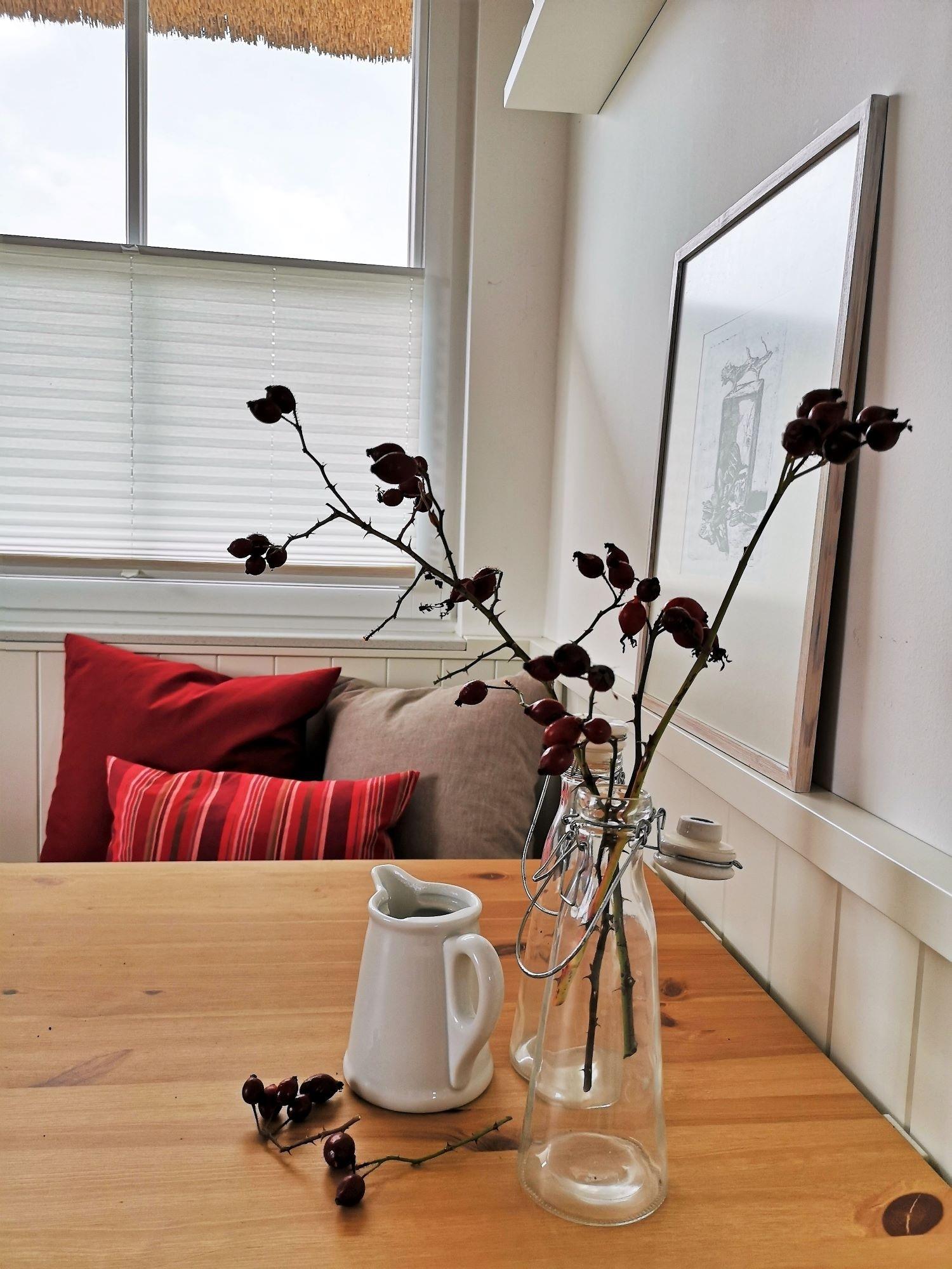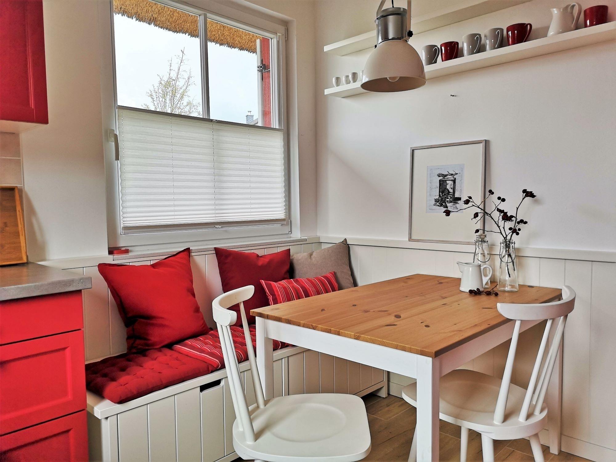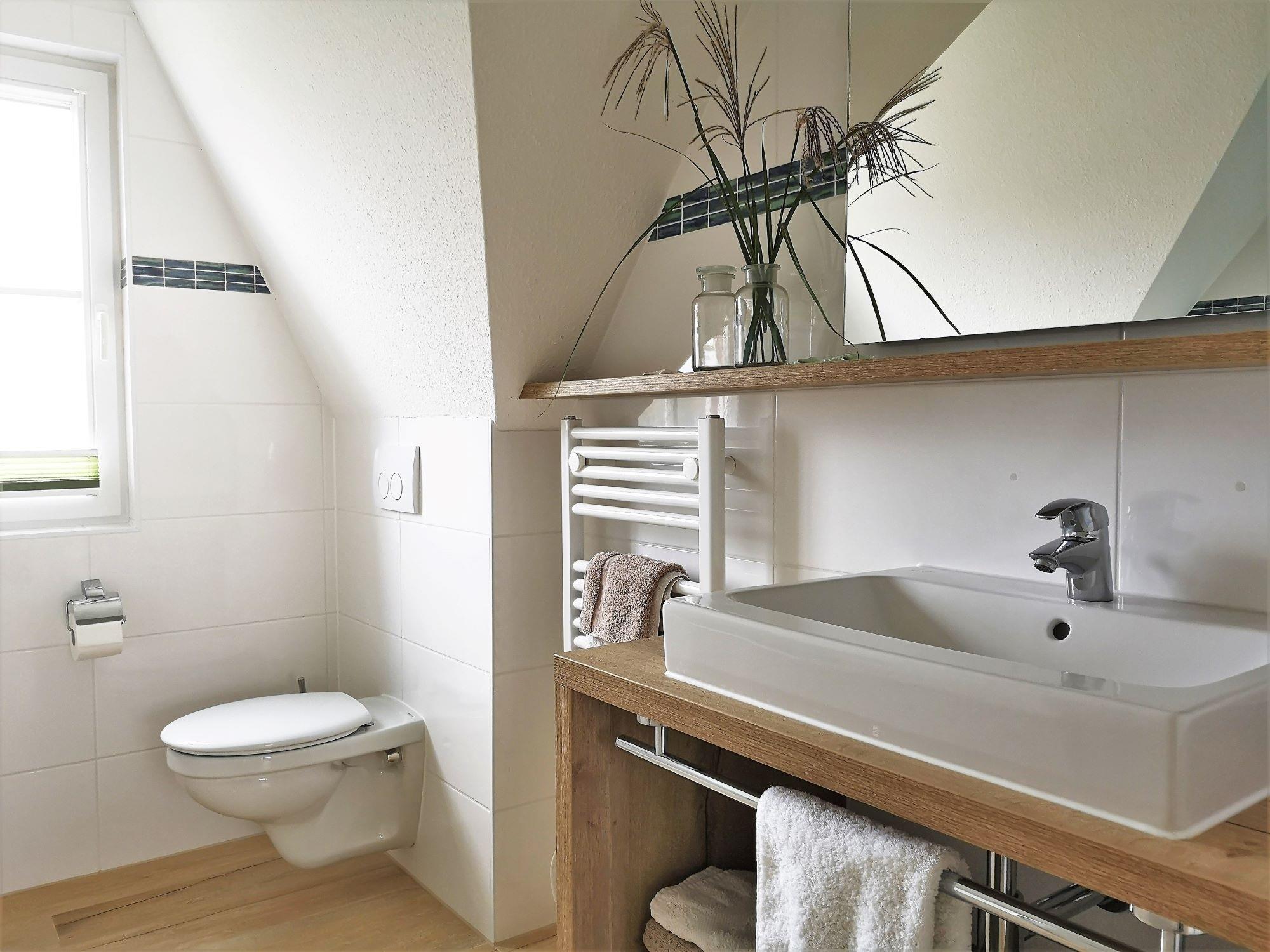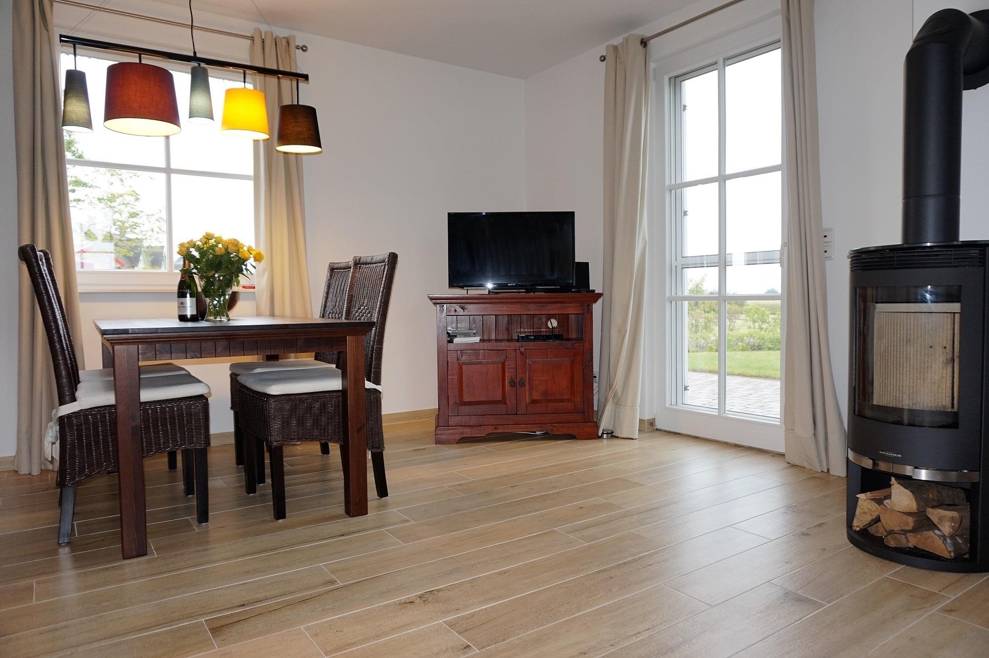 Genießen Sie Ihren Urlaub in unserem neuwertigen, hochwertigen Haus Seeadler. Ob im Sommer auf der Terrasse oder im Garten mit Blick über die bewirtschafteten Felder und auf das Meer oder im Winter mit einem Buch vor dem Kamin: das Haus bietet das ganze Jahr vielfältige Möglichkeiten für Ruhe- und Erholungssuchende fernab von Straßen, Verkehr und Massentourismus in einer einzigartigen Lage am Rande einer Siedlung von Reetdachhäusern. Der naturbelassene Sandstrand liegt ca. 500m entfernt und ist über einen kleinen Feldweg zu erreichen. Einige Meter weiter liegt ein gebührenpflichtiger, gepflegter Badestrand mit großem Spielplatz und Beach-Volleyballfeld. Das über 106 qm große, lichtdurchflutete Haus Seeadler bietet Ihnen im Erdgeschoss einen großzügig geschnittenen Wohn-, Essraum mit Kaminofen und Bücherecke, eine komplett ausgestattete, separate Küche mit hochwertigen Elektrogeräten und Sitzecke sowie und einem angrenzenden HWR, der mit einer Waschmaschine inkl. Trockner ausgestattet ist. Ebenso befindet sich im Erdgeschoss ein neues Duschbad mit Tageslicht.