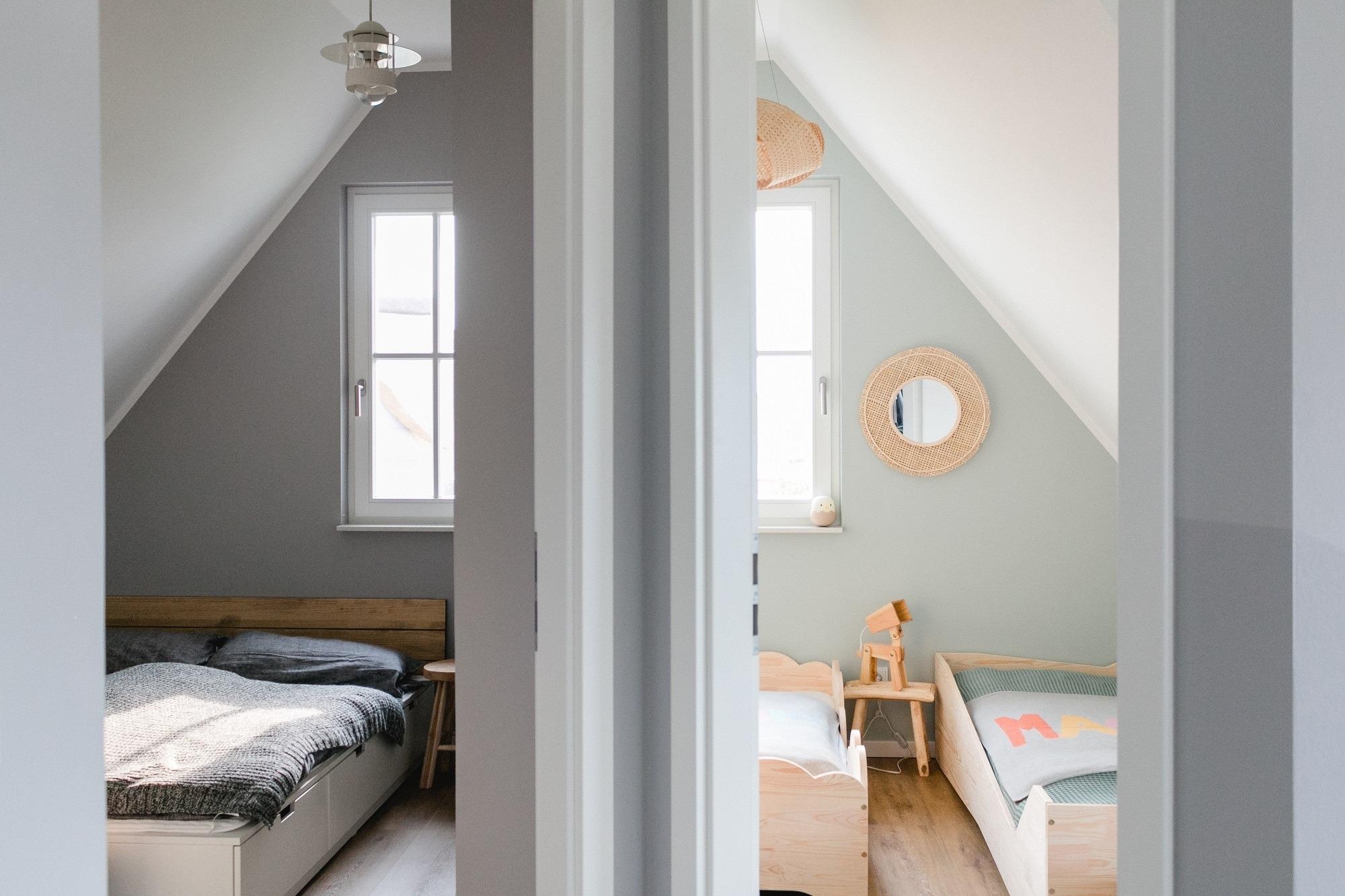 Angrenzend finden Sie das „Kinderzimmer“ mit 3 Einzelbetten von 1,40m, 1,60m und 2,00m Länge so dass hier 3 Kinder oder auch 2 Kinder und 1 Erwachsener bequem Schlafen können. An genügend Stauraum für Kleidung und Spielzeug sowie ansprechende Details wie z.B. eine Bücherkiste haben wir auch hier gedacht.