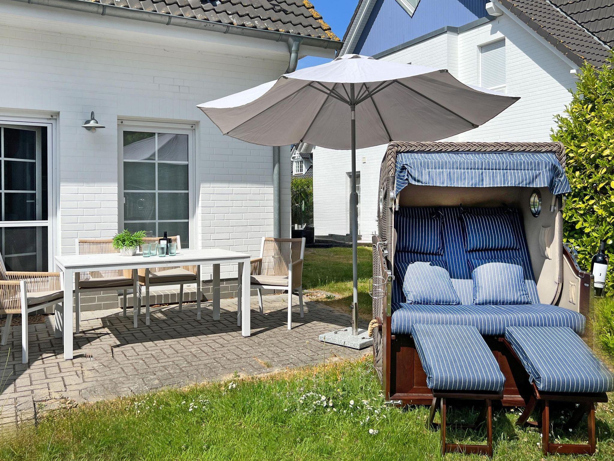 • Sonnige Terrasse mit Garten, Grillmöglichkeit und eigenem Strandkorb