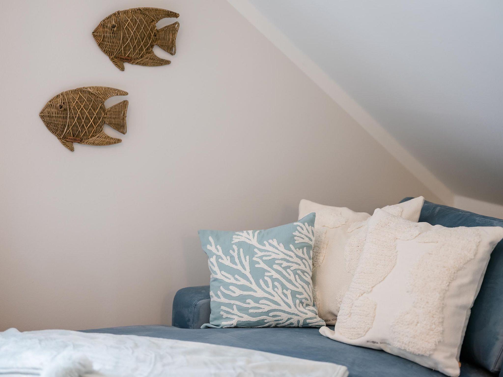 Dieses liebevoll eingerichtete Appartement liegt im Dachgeschoss eines kleinen, romantischen Hauses, das nur aus zwei Wohnungen besteht. Beide Appartments, das hier vorgestellte mit Namen AUSGUCK sowie das im Erdgeschoss befindliche Apartment SEGELMAST können einzeln (jeweils bis 4 Personen) oder auch zusammen als Haus für Familien bis 8 Personen gemietet werden. Auf einem eignen Grundstück gelegen, ist es der ideale Ort für ruhige und entspannte Stunden am Meer.