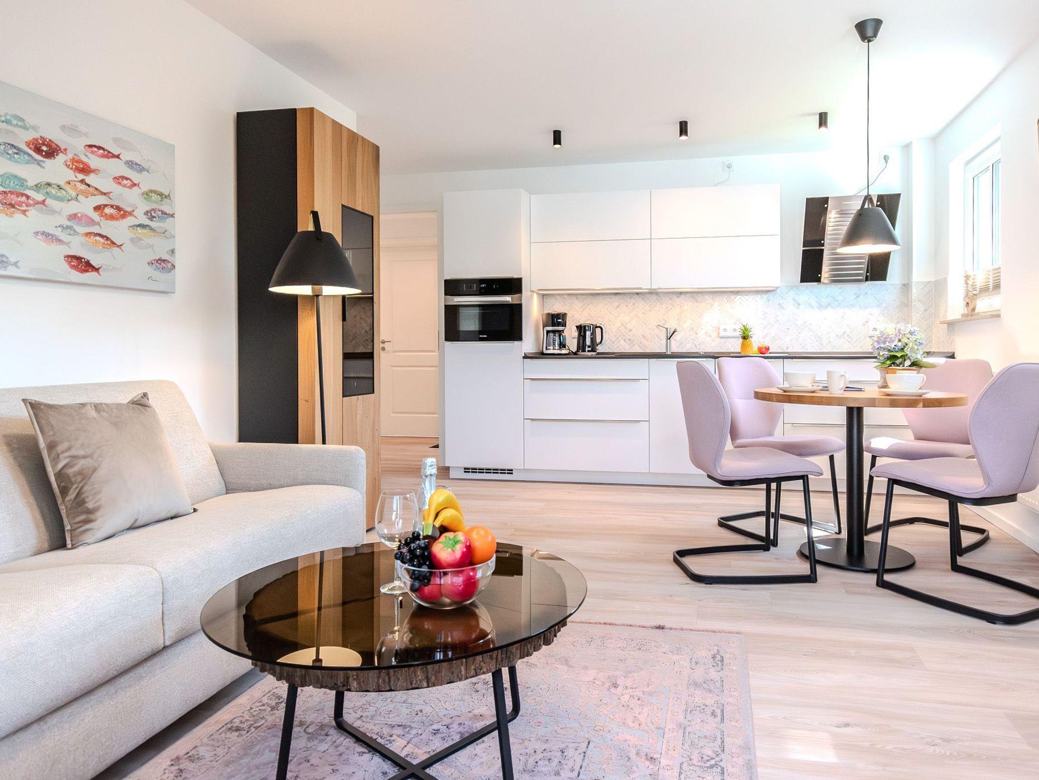 Im offenen Wohnbereich finden Sie Raum zum Entspannen, die moderne Küche bietet alles für kulinarische Momente, und das komfortable Boxspringbett im Schlafzimmer sorgt für erholsame Nächte nach einem langen Tag an der Ostsee.