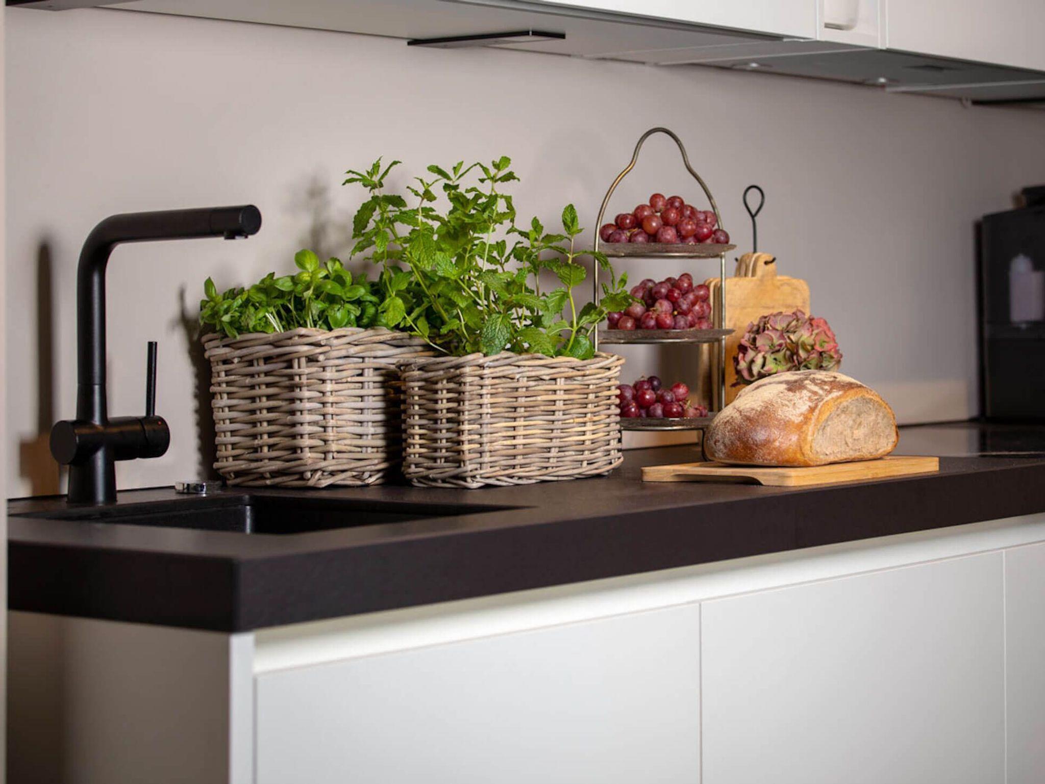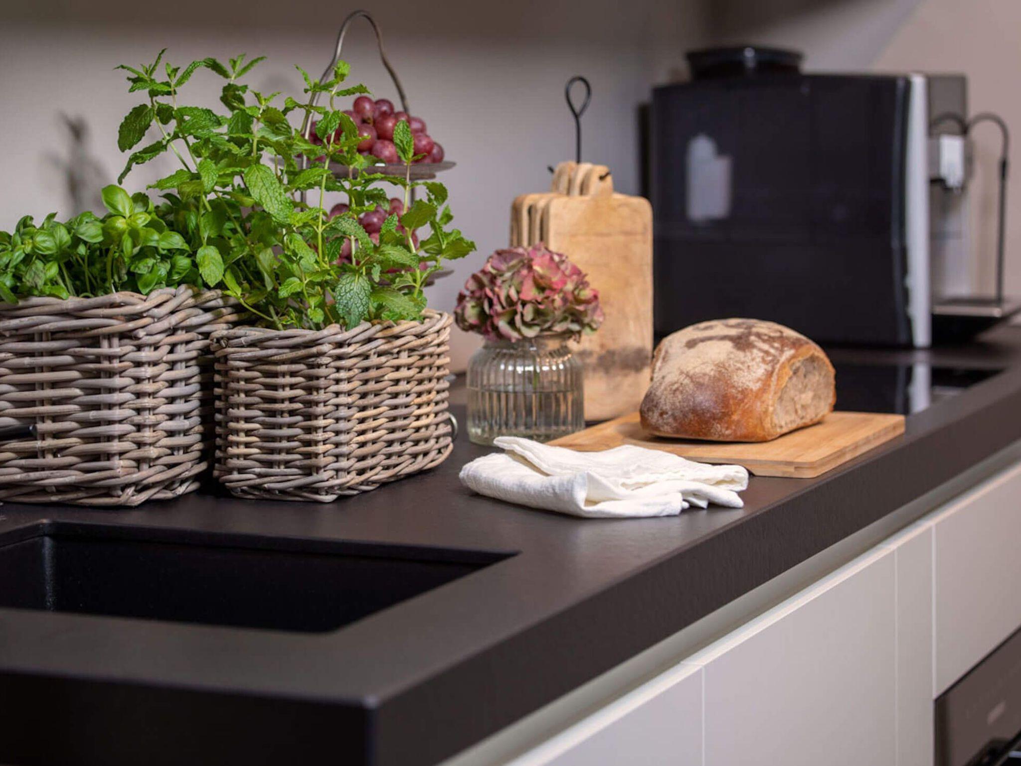 Die voll ausgestattete Küche bietet Ihnen die Möglichkeit, Ihre eigenen Mahlzeiten zuzubereiten. Sie finden alle notwendigen Geräte und Utensilien, um köstliche Gerichte zuzubereiten. Ein Esstisch steht ebenfalls zur Verfügung, so dass Sie Ihre Mahlzeiten bequem einnehmen können oder auf der großzügigen Süd-Terrasse.