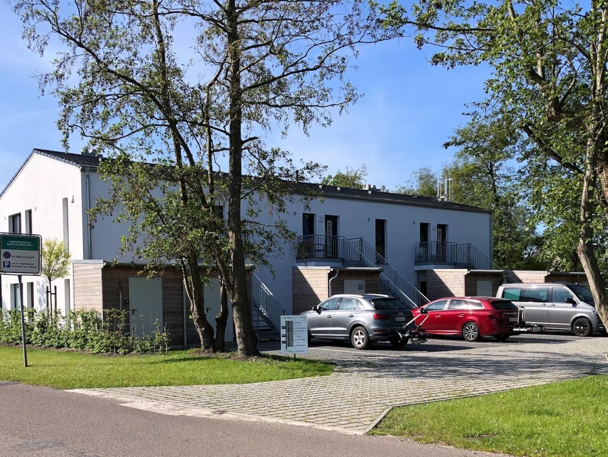 Zu Ihrer Koje gehören ein Parkplatz direkt vorm Haus und ein eigener großzügiger, abschließbarer Fahrradschuppen mit Lademöglichkeit für Ihr E-bike.